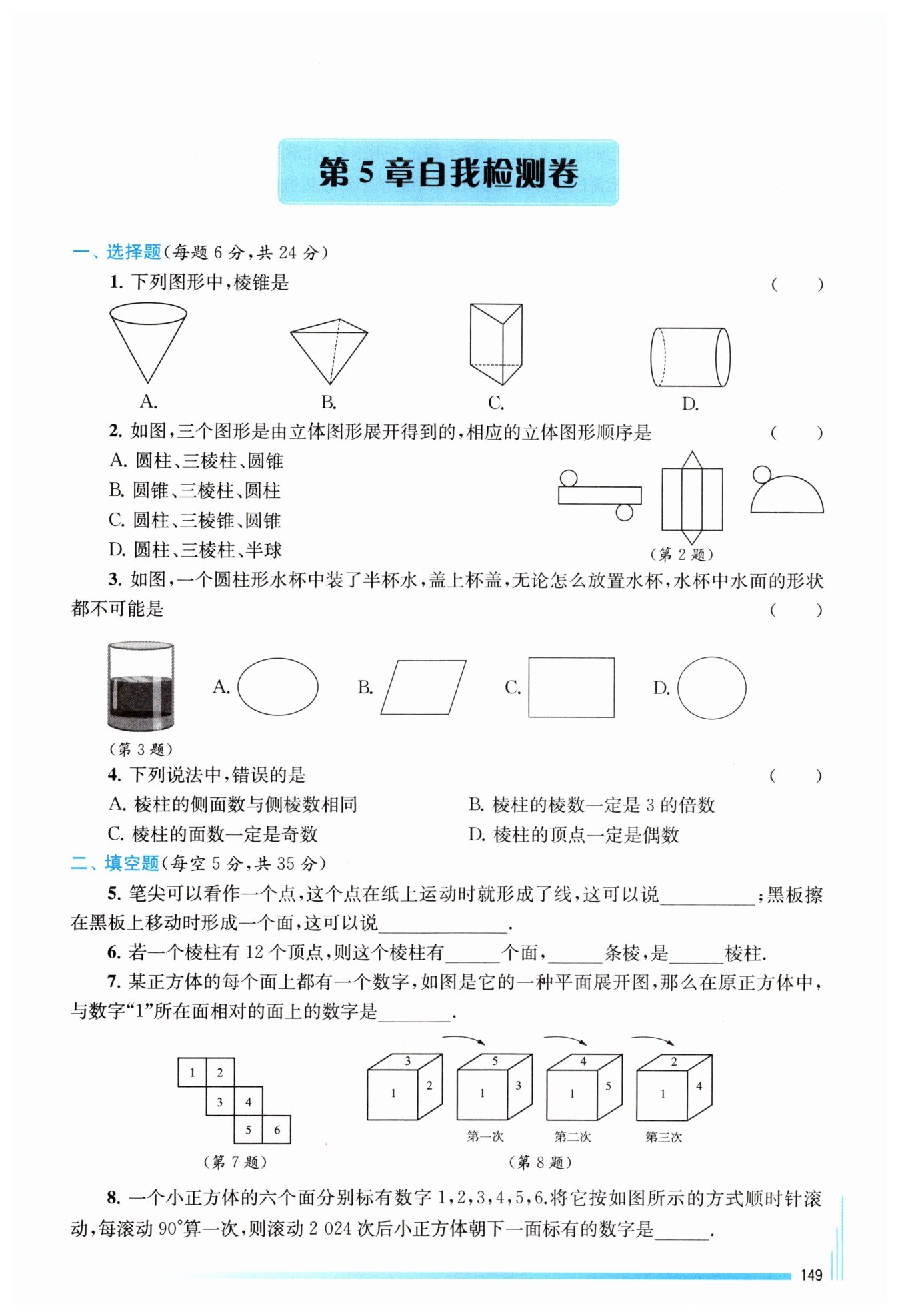 滾動2024次后朝下一面數(shù)字與第4次相同,為3。