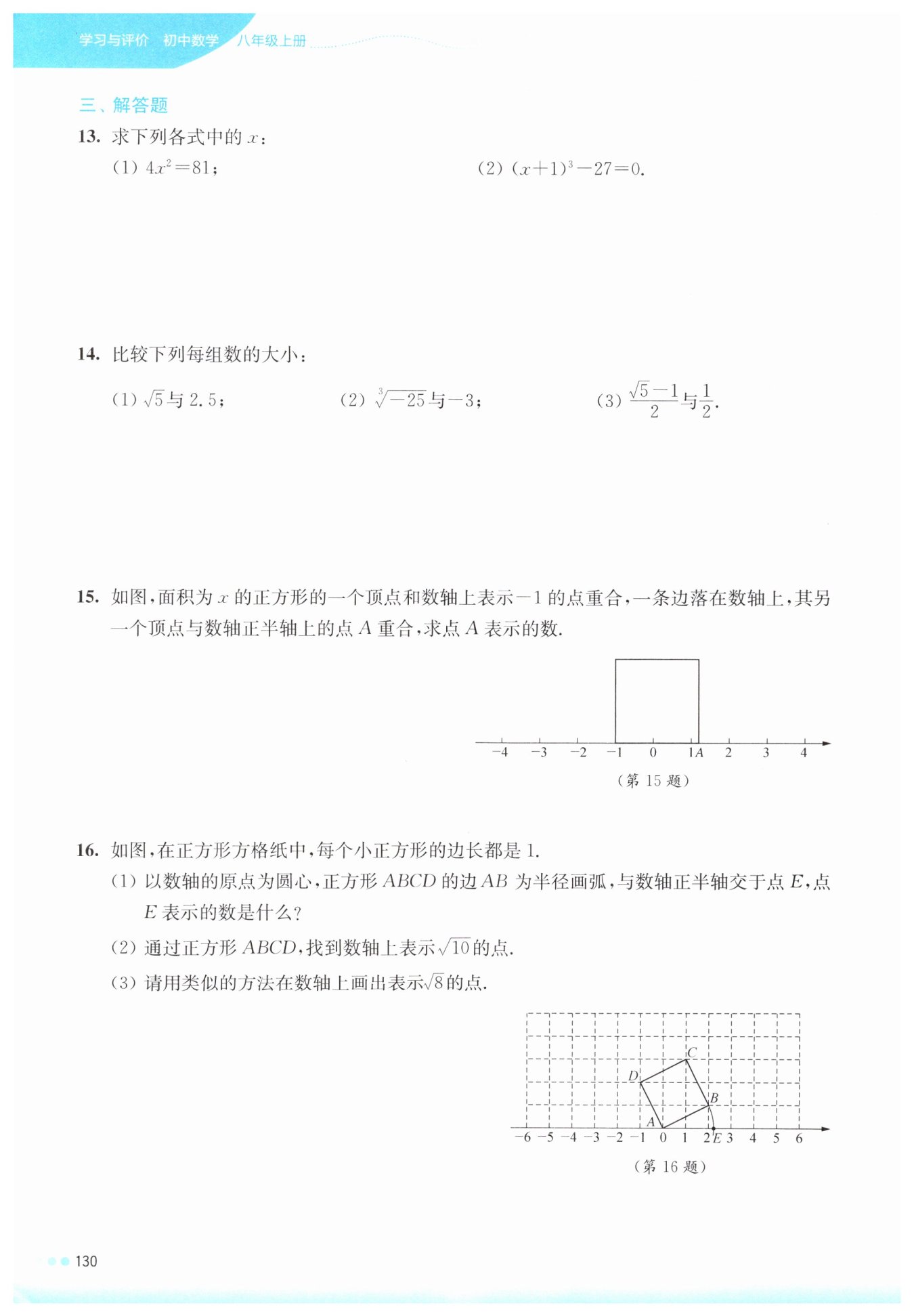 所以,以原點(diǎn)為圓心,$AB$為半徑畫弧,與數(shù)軸正半軸的交點(diǎn)$E$表示的數(shù)就是$\sqrt{5}$。