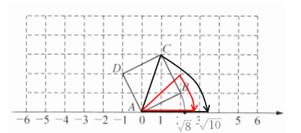 (2)以$D$為起點(diǎn),向右水平移動(dòng)$1$個(gè)單位,再向上垂直移動(dòng)$3$個(gè)單位,連接$DF$,以原點(diǎn)為圓心,$DF$為半徑畫弧,與數(shù)軸正半軸交點(diǎn)即為$\sqrt{10}$;
