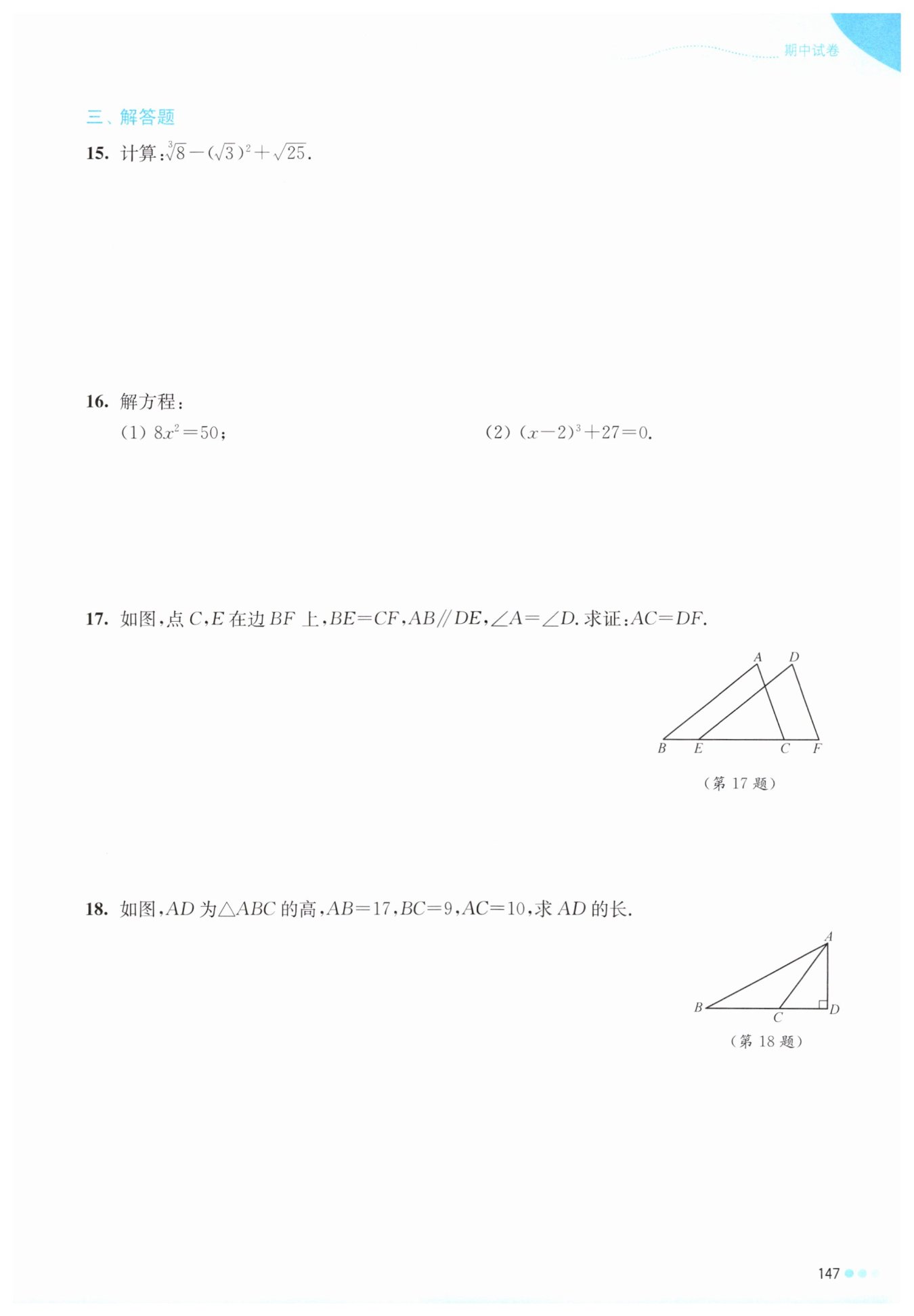 則$AD^{2}=17^{2}-15^{2}=(17 + 15)×(17 - 15)=32×2 = 64$,