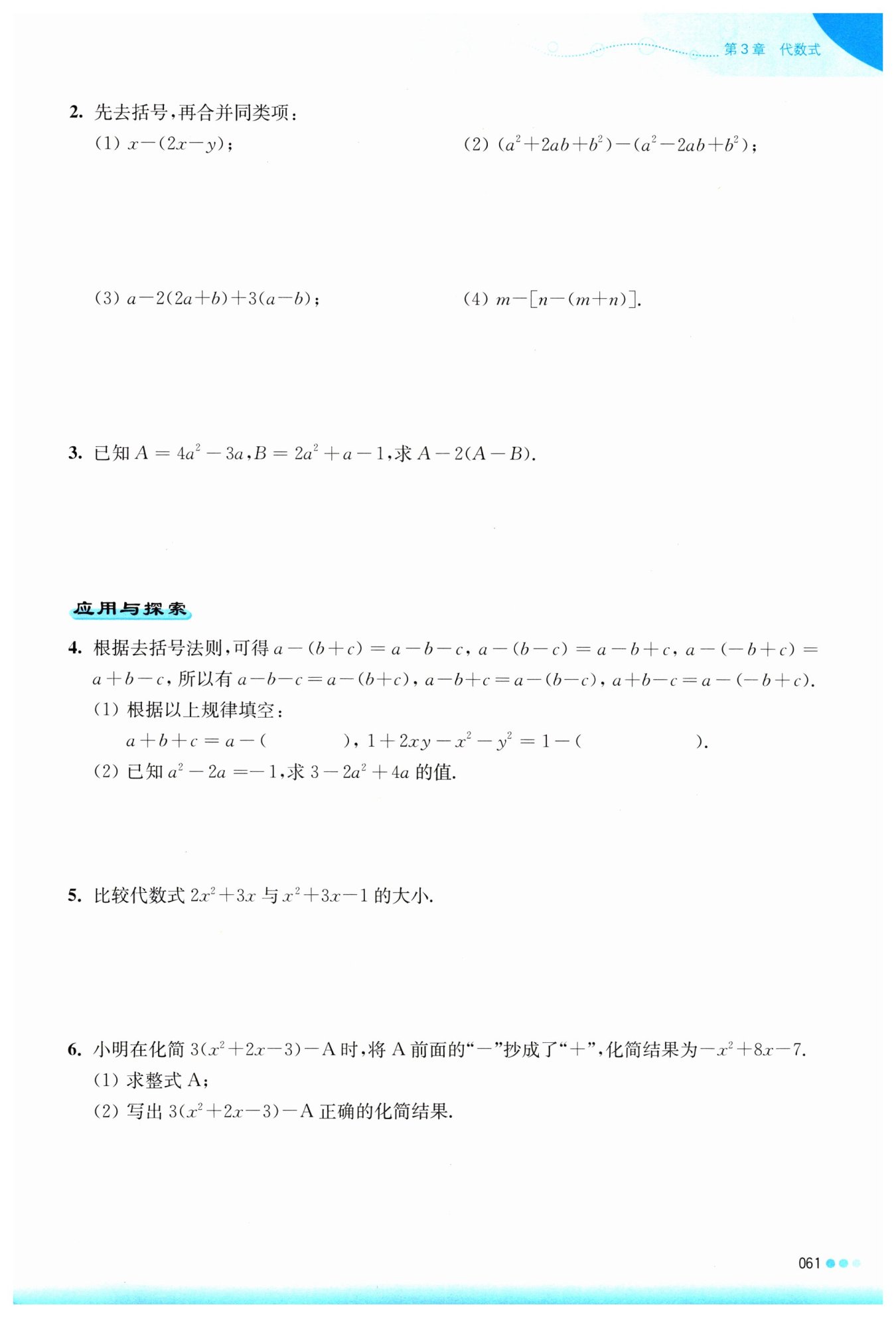 解:$2x^2 + 3x - (x^2 + 3x - 1)$