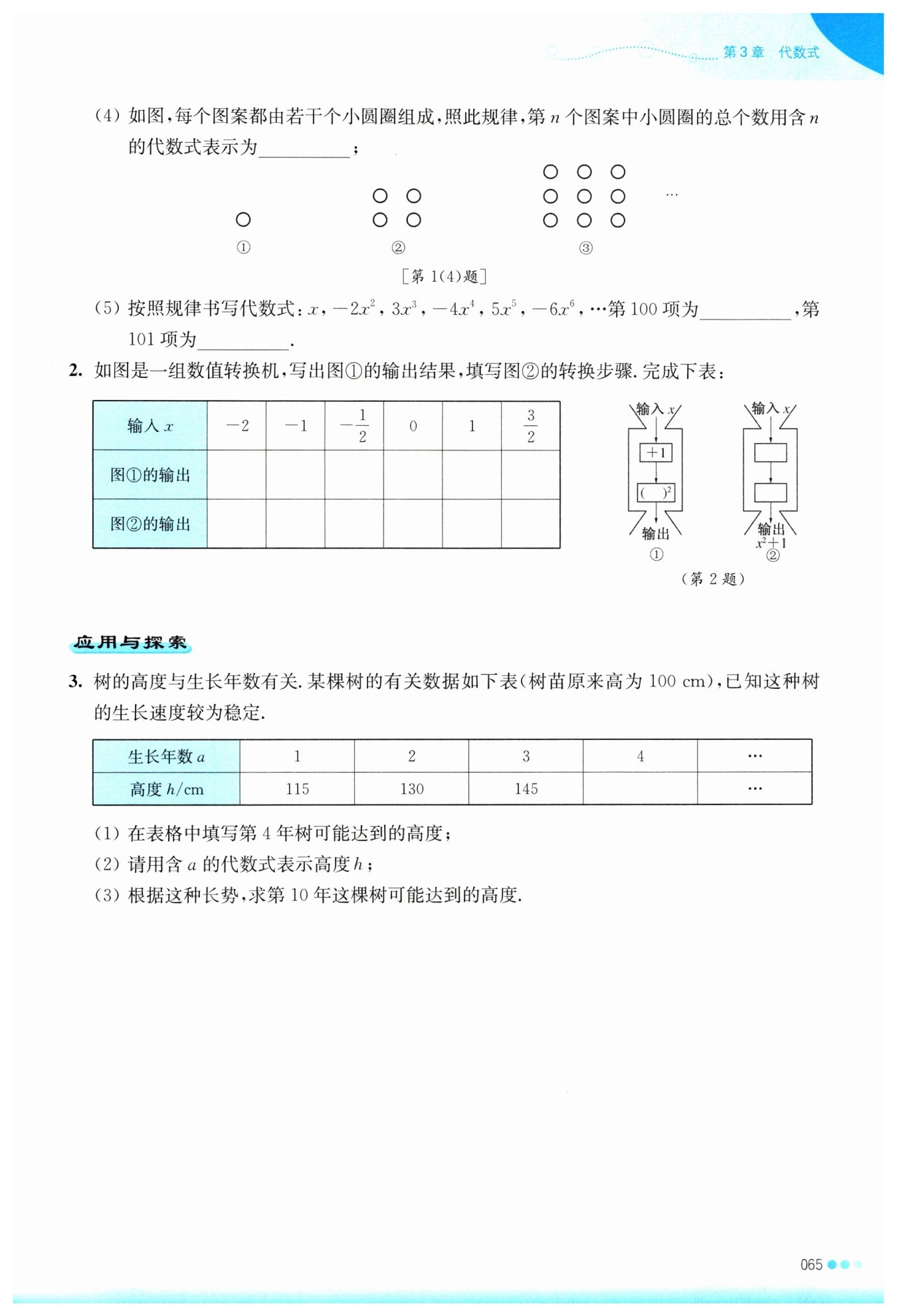 ?$ (3)$?將?$a=10$?代入?$h=100+15a,$?得