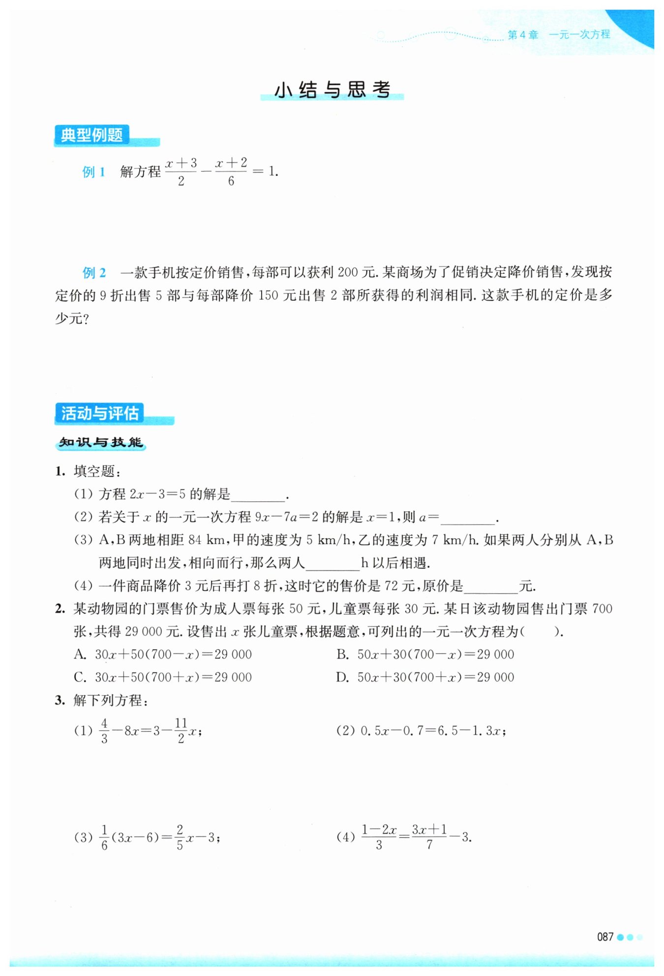 去括號得$0.8x-2.4=72$,
