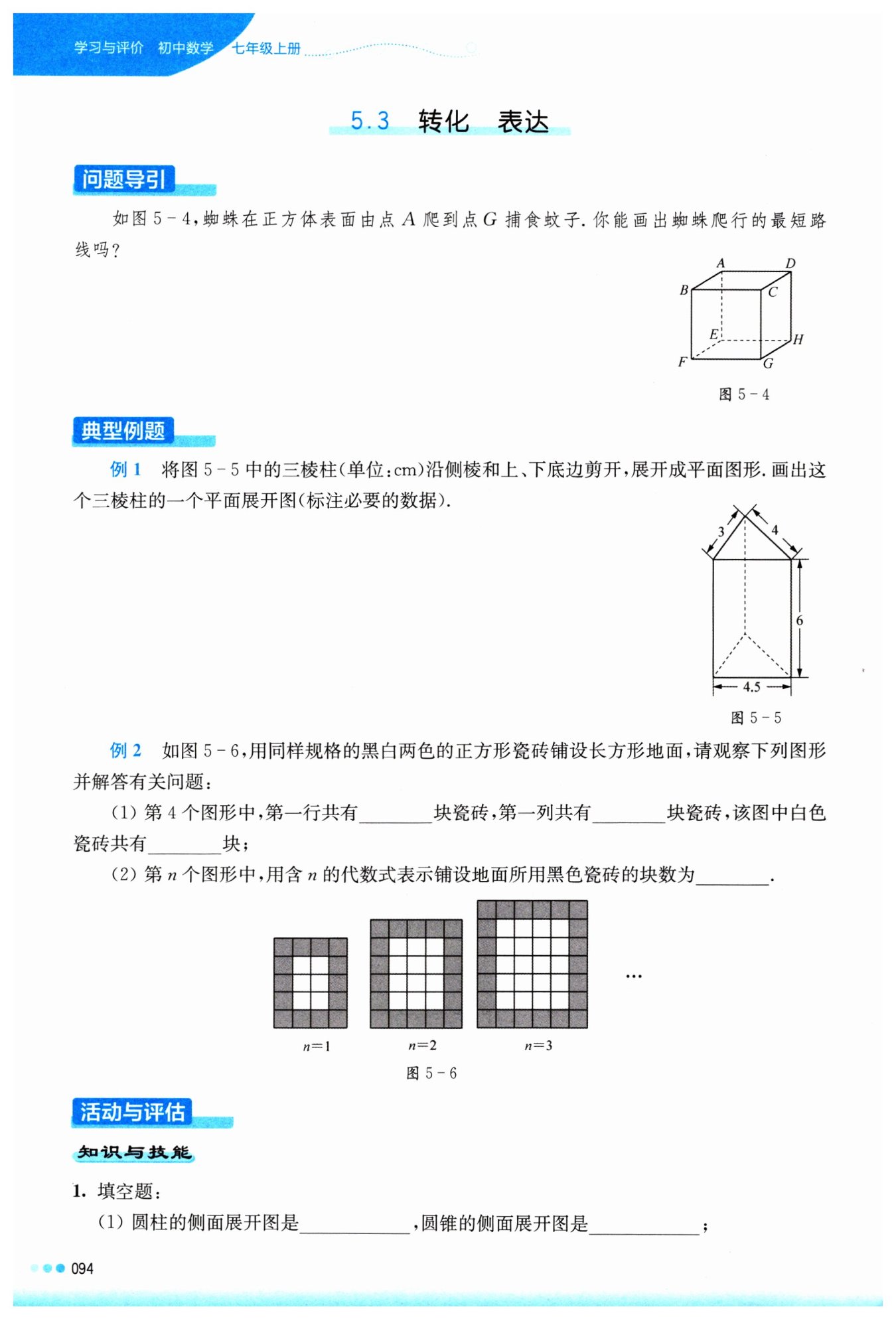 (1)圓柱的側(cè)面展開圖是一個(gè)長(zhǎng)方形,圓錐的側(cè)面展開圖是一個(gè)扇形。
