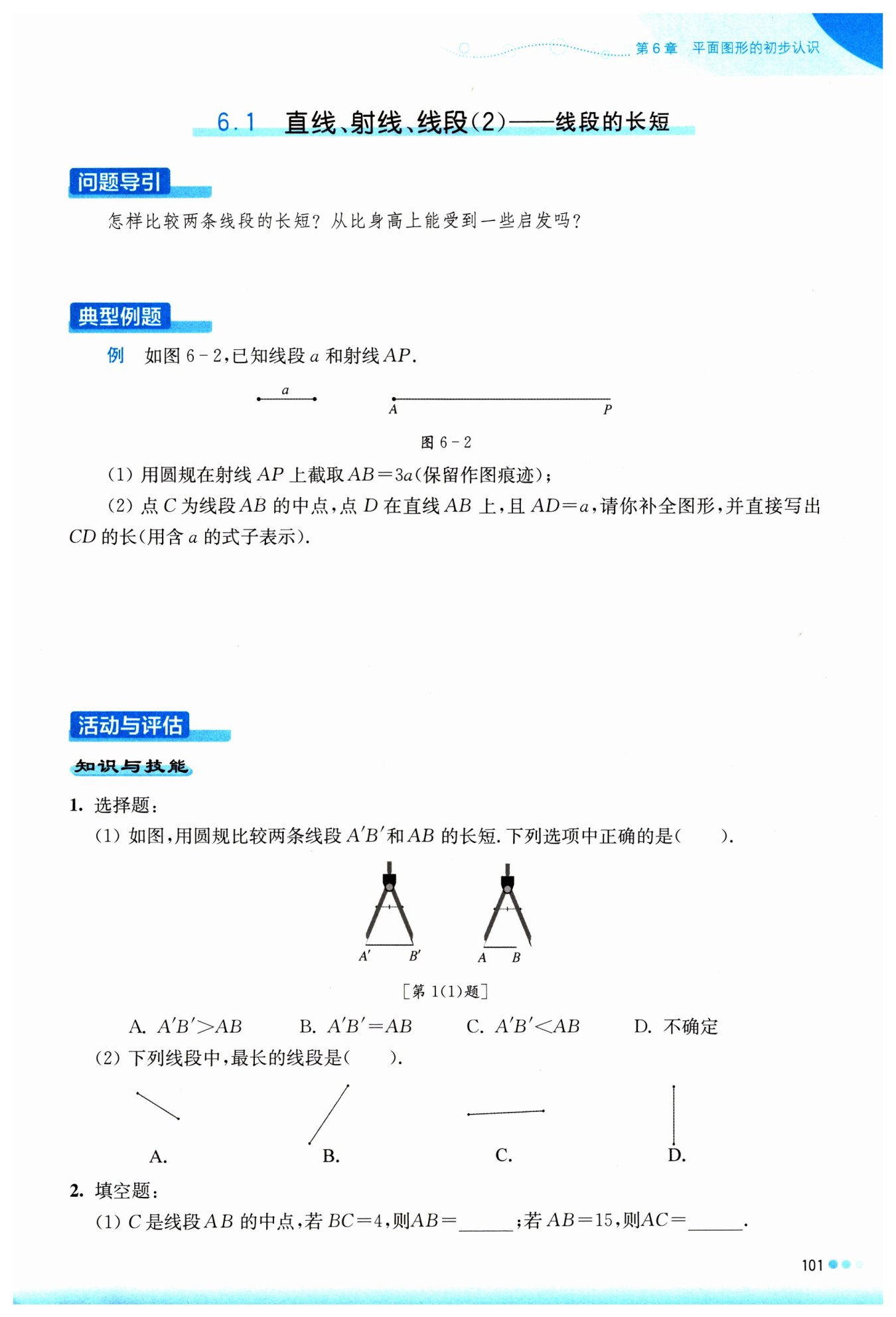 2. 度量法:用刻度尺分別量出兩條線段的長(zhǎng)度,數(shù)值大的線段長(zhǎng)。