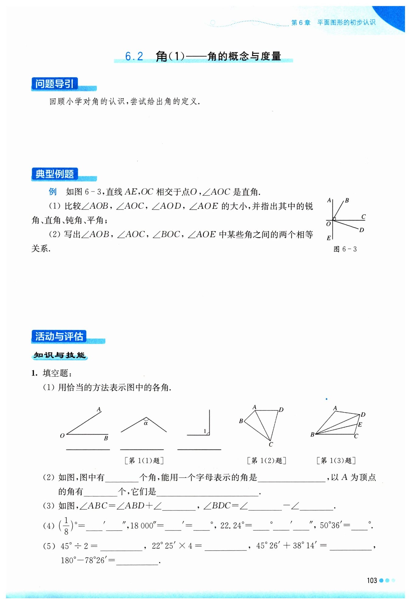 其中?$∠AOB$?為銳角,?$∠AOC$?為直角,?$∠AOD$?為鈍角,?$∠AOE$?為平角
