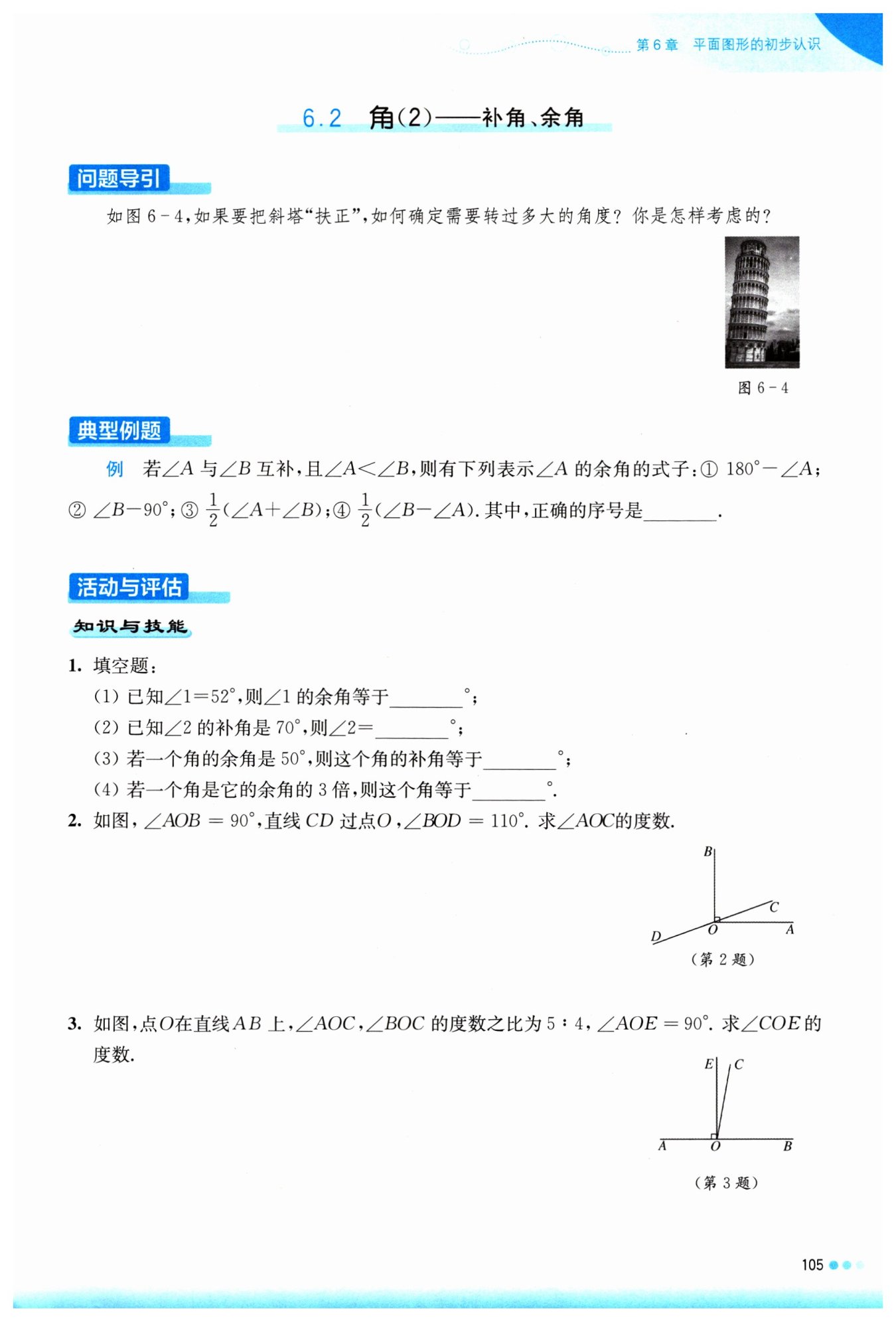 (1) 已知 $\angle 1 = 52^\circ$,根據(jù)余角的定義,$\angle 1$ 的余角為 $90^\circ - \angle 1 = 90^\circ - 52^\circ = 38^\circ$。