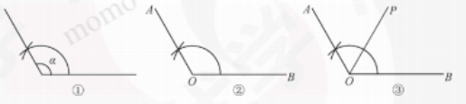 1. 以∠α的頂點(diǎn)為圓心,任意長為半徑畫弧,分別交∠α的兩邊于點(diǎn)A、B。