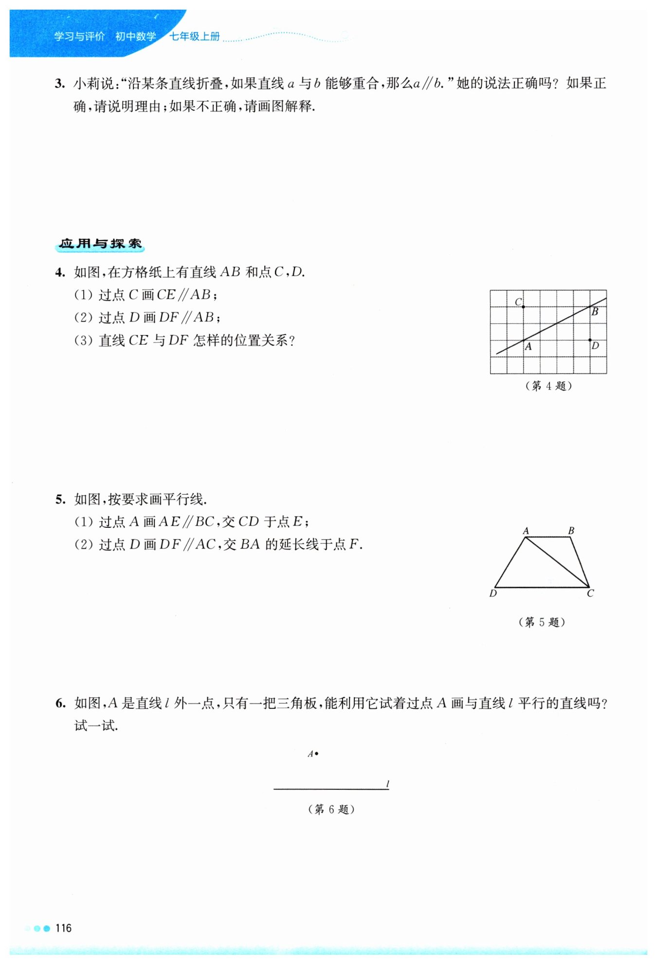 解:不正確。如圖,沿直線 l 折疊后,直線a與直線b重合,但是直線a與b不平行
