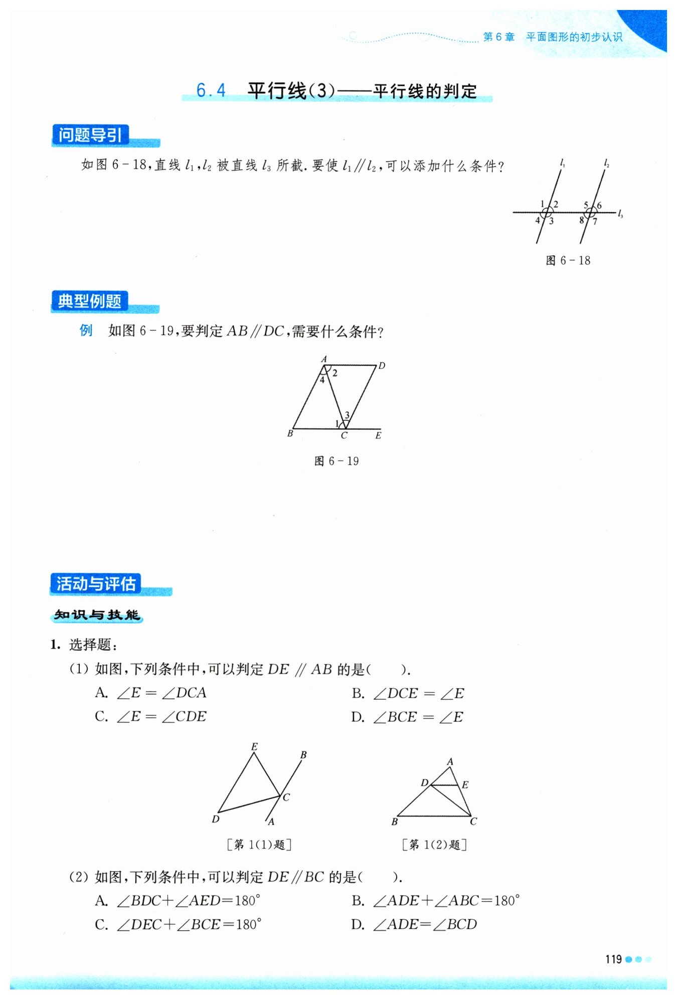 (1)對于第一題,根據(jù)平行線的判定條件,內(nèi)錯角相等,兩直線平行。