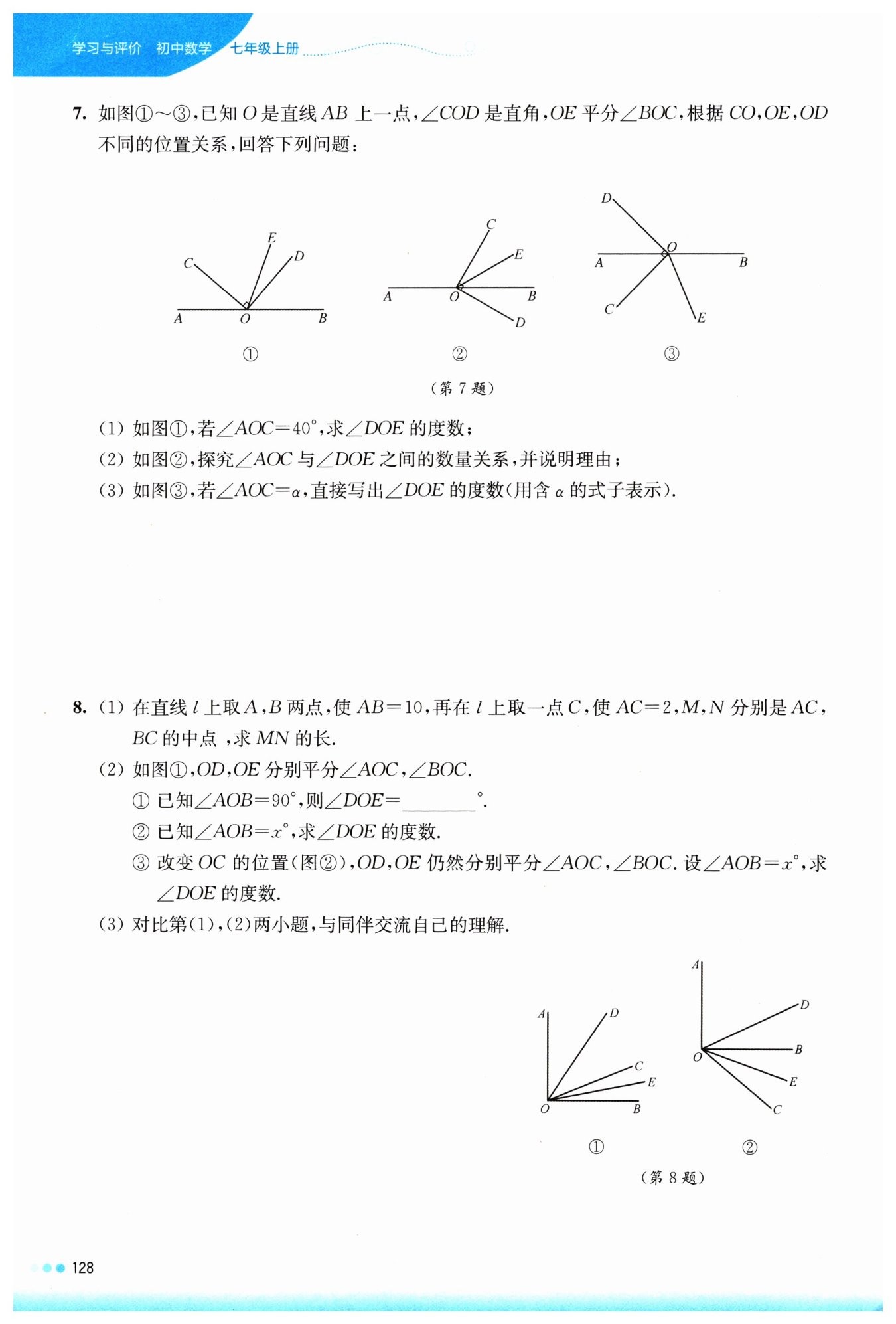 ③∵?$OD$?平分?$∠AOC ,$??$ OE$?平分?$∠BOC$?