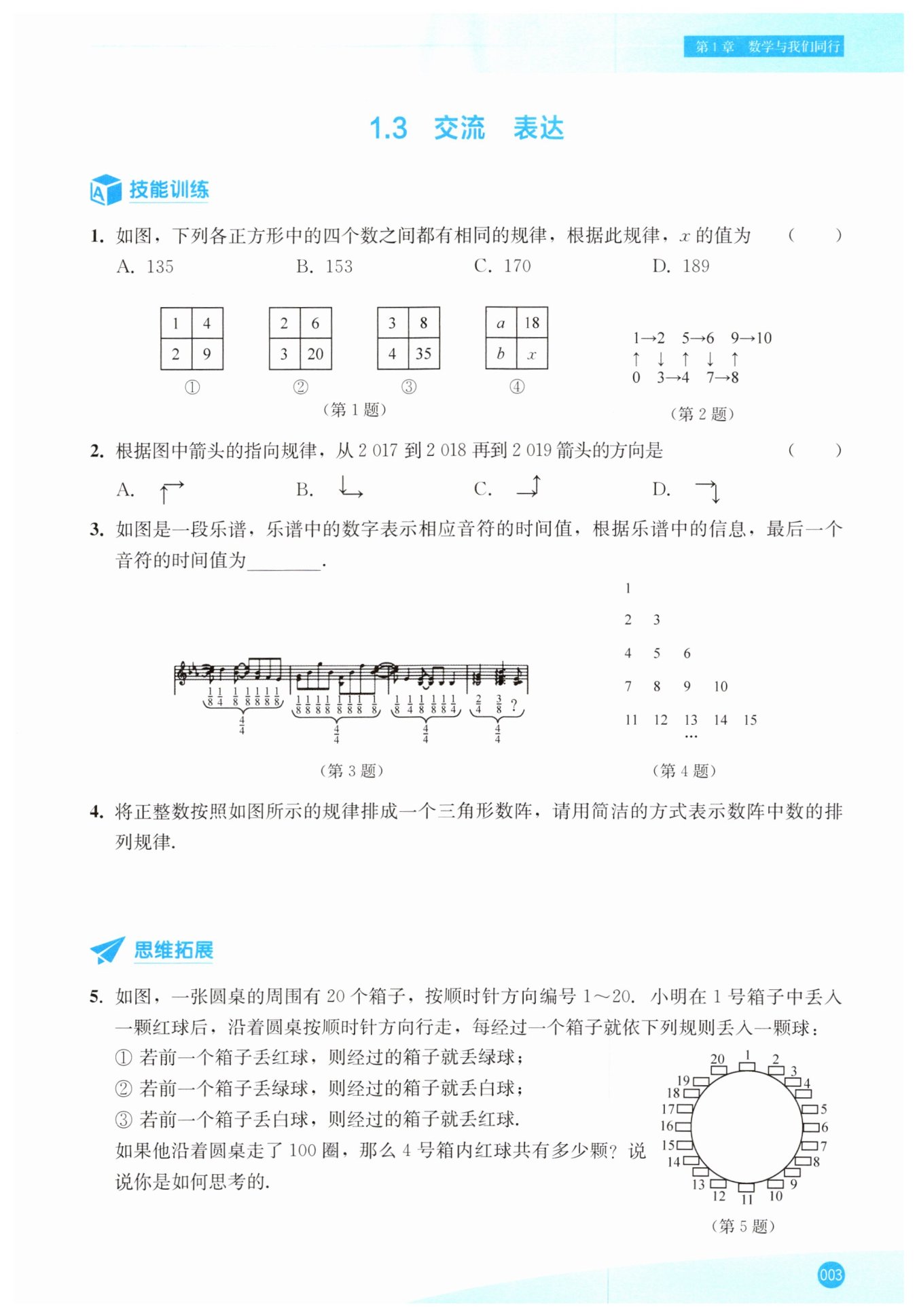 計算2017所在循環(huán)位置:$2017 ÷ 4 = 504\cdots\cdots1$,余數(shù)為1,對應(yīng)循環(huán)組中第1個數(shù)的箭頭方向→。
