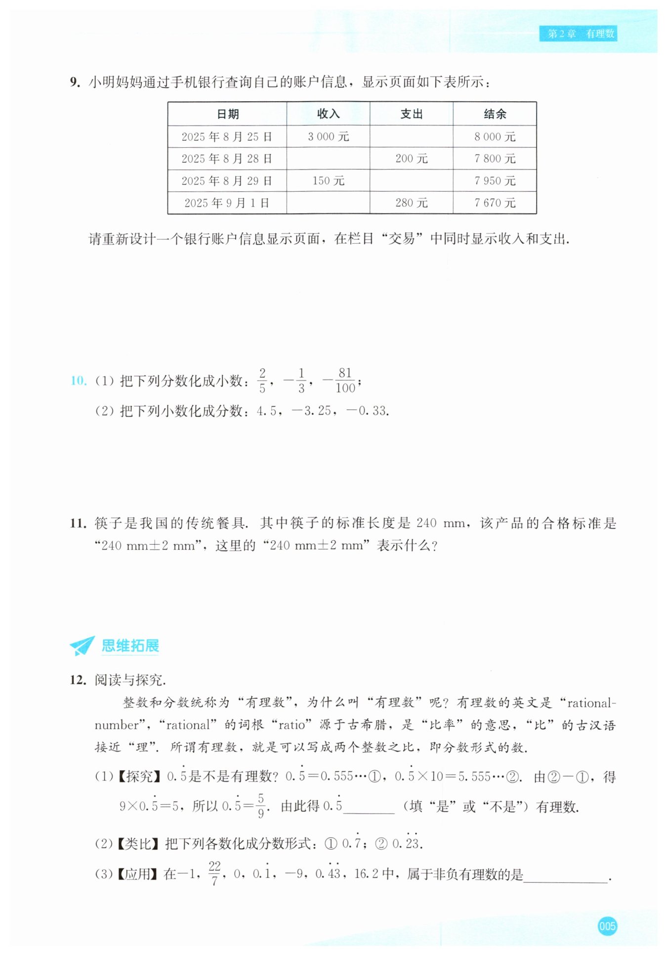 (2)①設(shè)$x=0.\dot{7}$,則$10x=7.\dot{7}$,$10x - x = 7$,$9x=7$,$x=\frac{7}{9}$