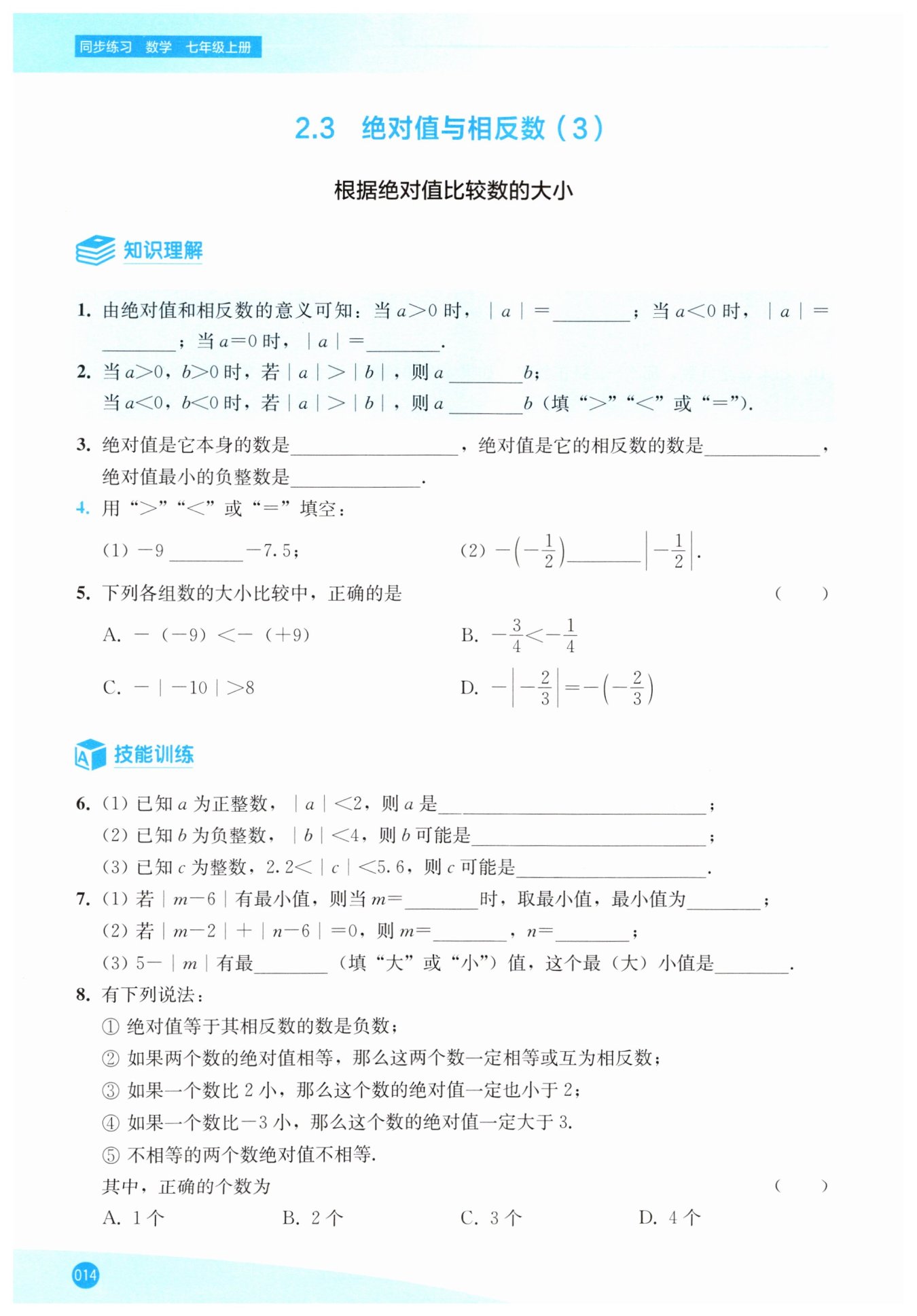 當(dāng)$a>0$時,$|a|=a$;當(dāng)$a<0$時,$|a|=-a$;當(dāng)$a= 0$時,$|a|=0$