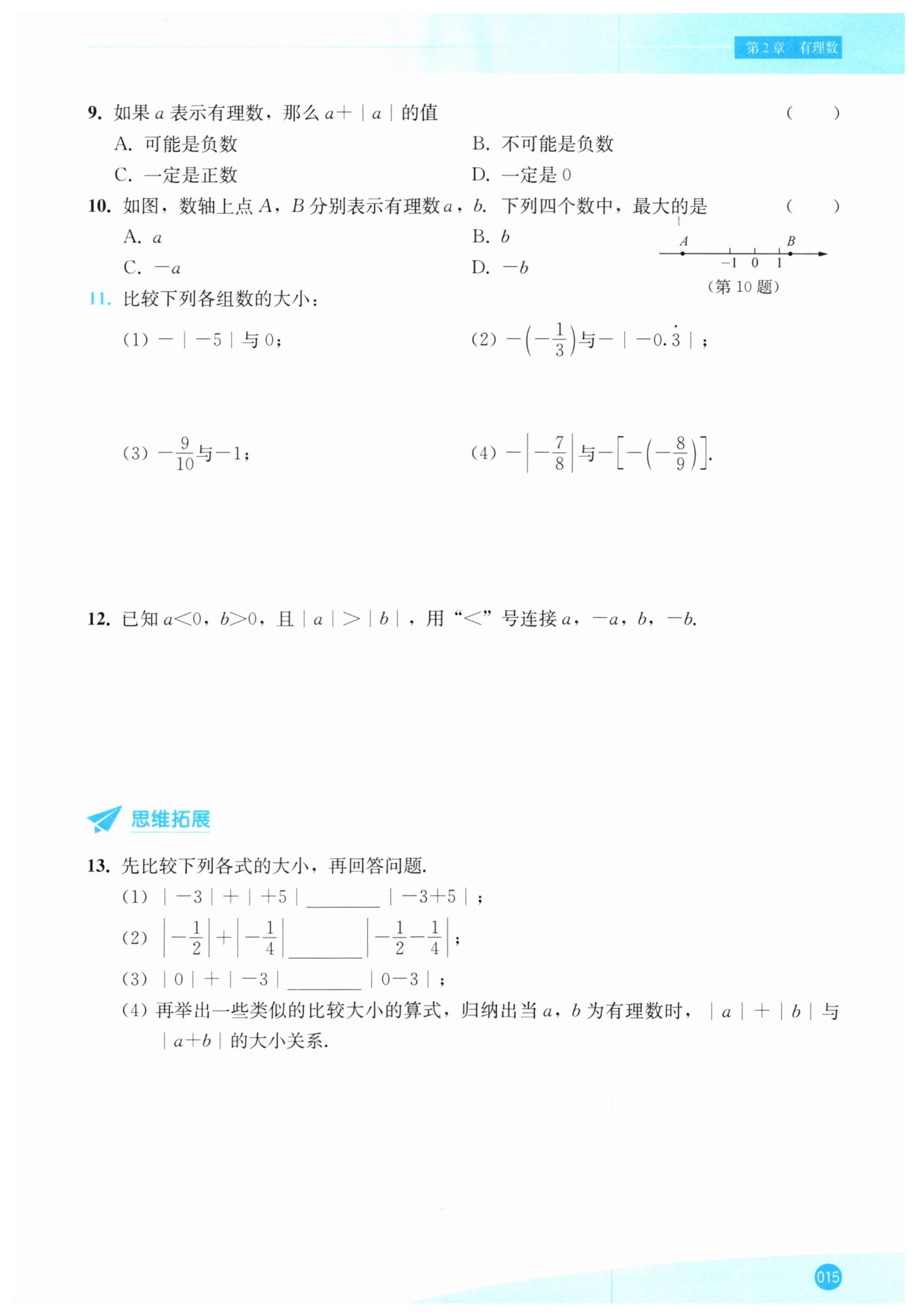 因為$-|-5|=-5,$負數(shù)小于0,所以$-|-5| < 0$