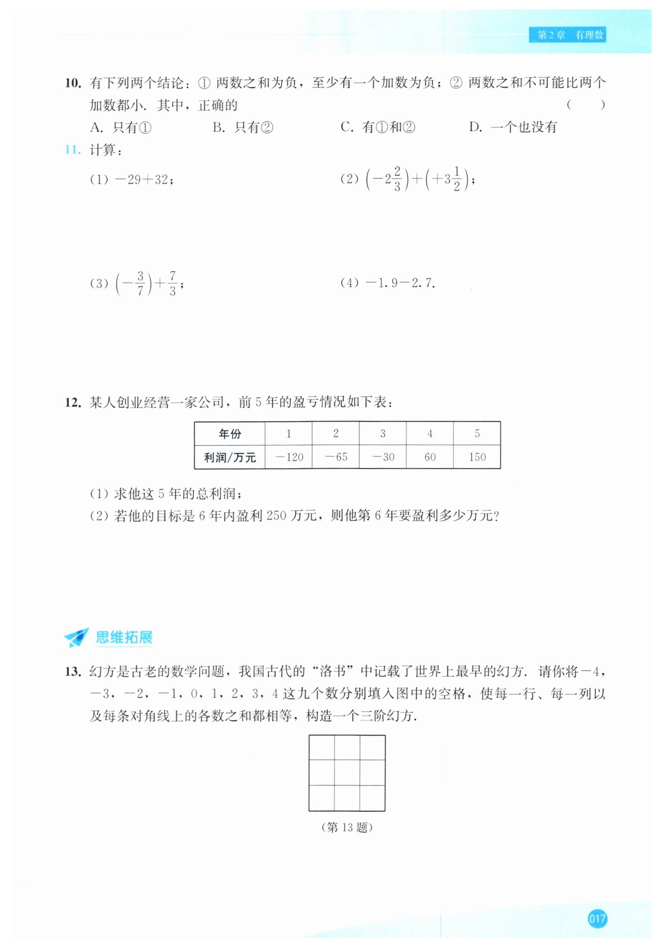 ② 例如$-1 + (-2) = -3$,$-3 < -1$且$-3 < -2$,此時和比兩個加數(shù)都小,②錯誤。