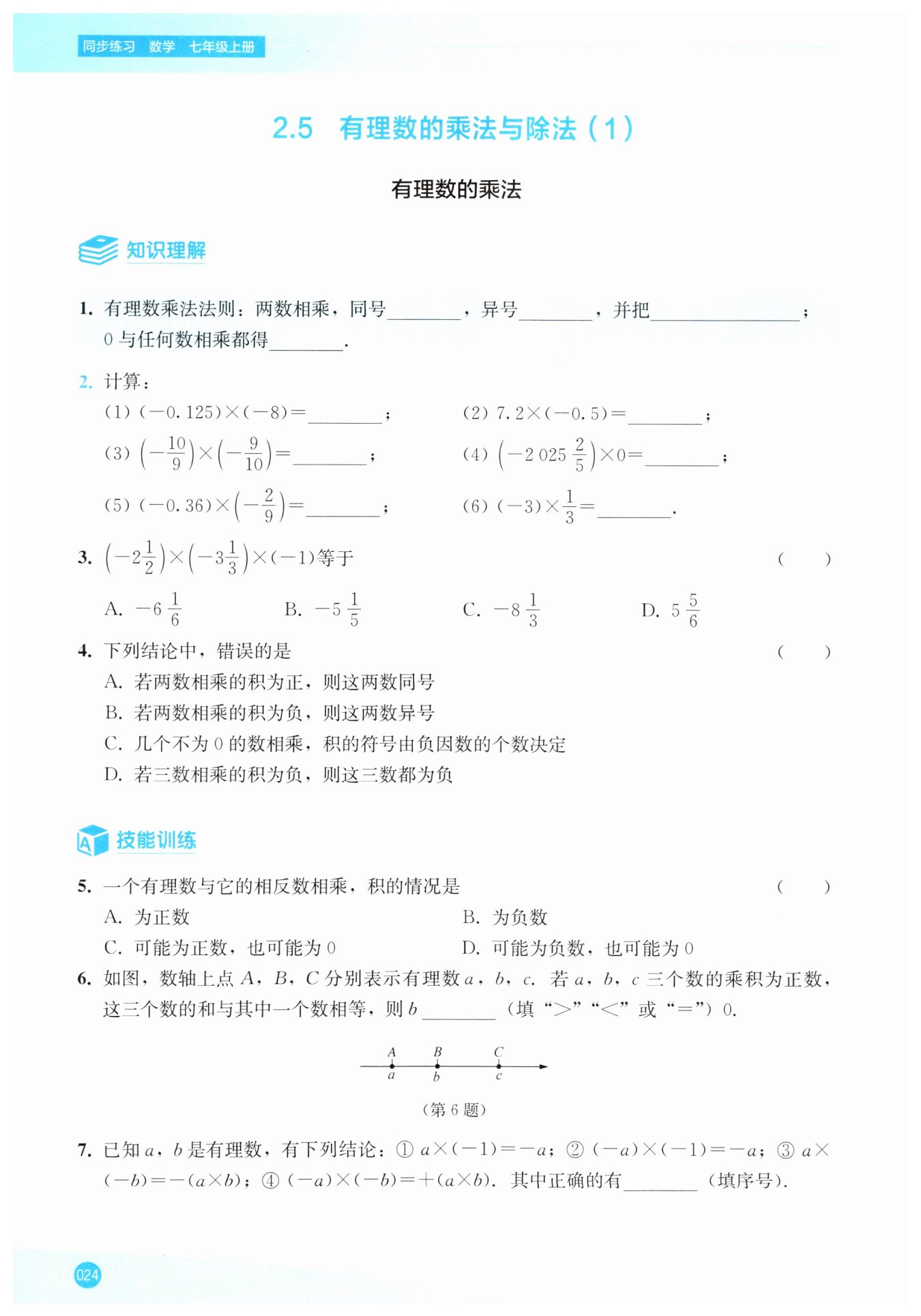 C. 幾個(gè)不為0的數(shù)相乘,負(fù)因數(shù)的個(gè)數(shù)為偶數(shù)時(shí)積為正,為奇數(shù)時(shí)積為負(fù),正確。