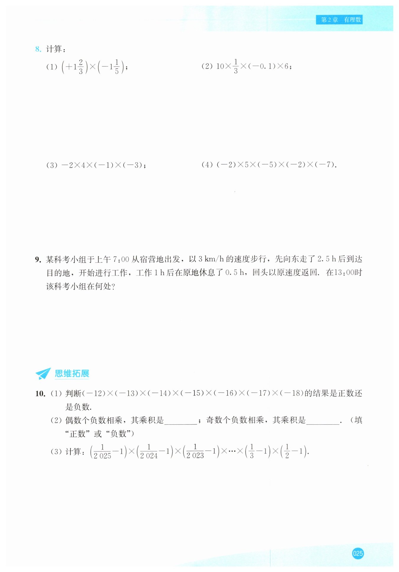 解:向東行走的距離為 $2.5 \times 3 = 7.5\ \text{km}。$