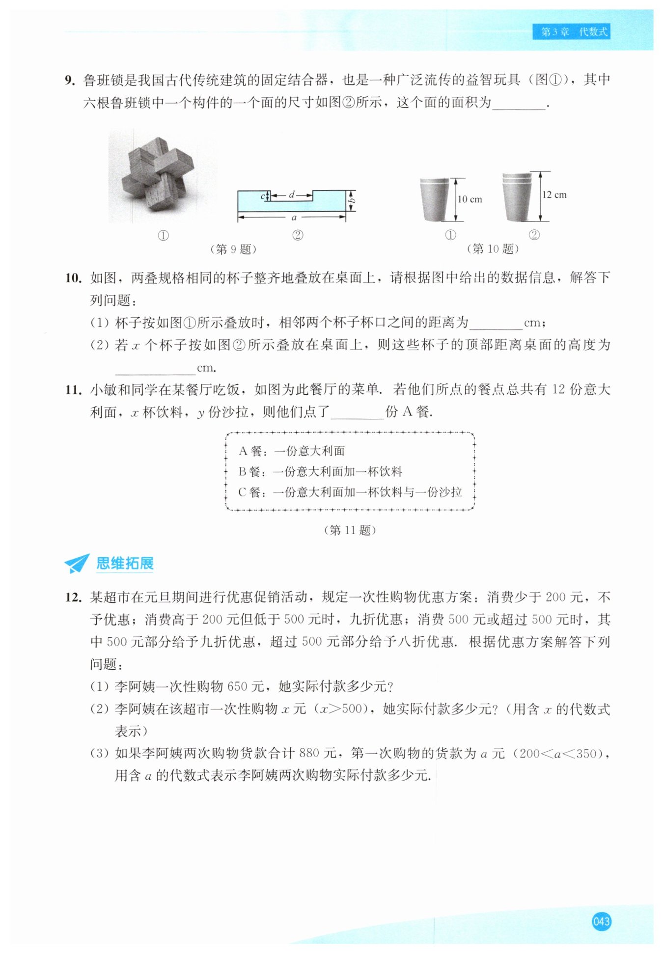 (1)因?yàn)?650\gt500,$所以其中$500$元部分給予九折優(yōu)惠,超過$500$元的部分為$650 - 500=150$元給予八折優(yōu)惠。