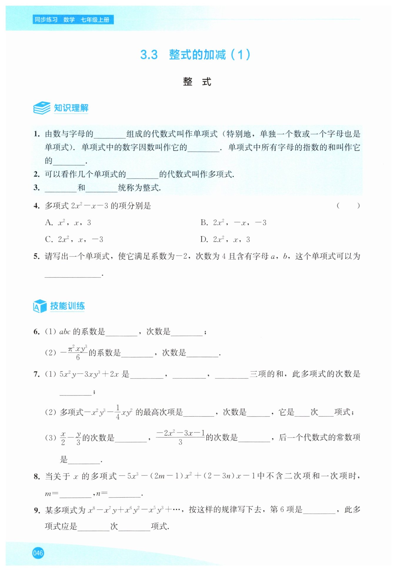 多項(xiàng)式$-5x^3 - (2m - 1)x^2 + (2 - 3n)x - 1$中,二次項(xiàng)系數(shù)為$-(2m - 1)$,一次項(xiàng)系數(shù)為$(2 - 3n)$。