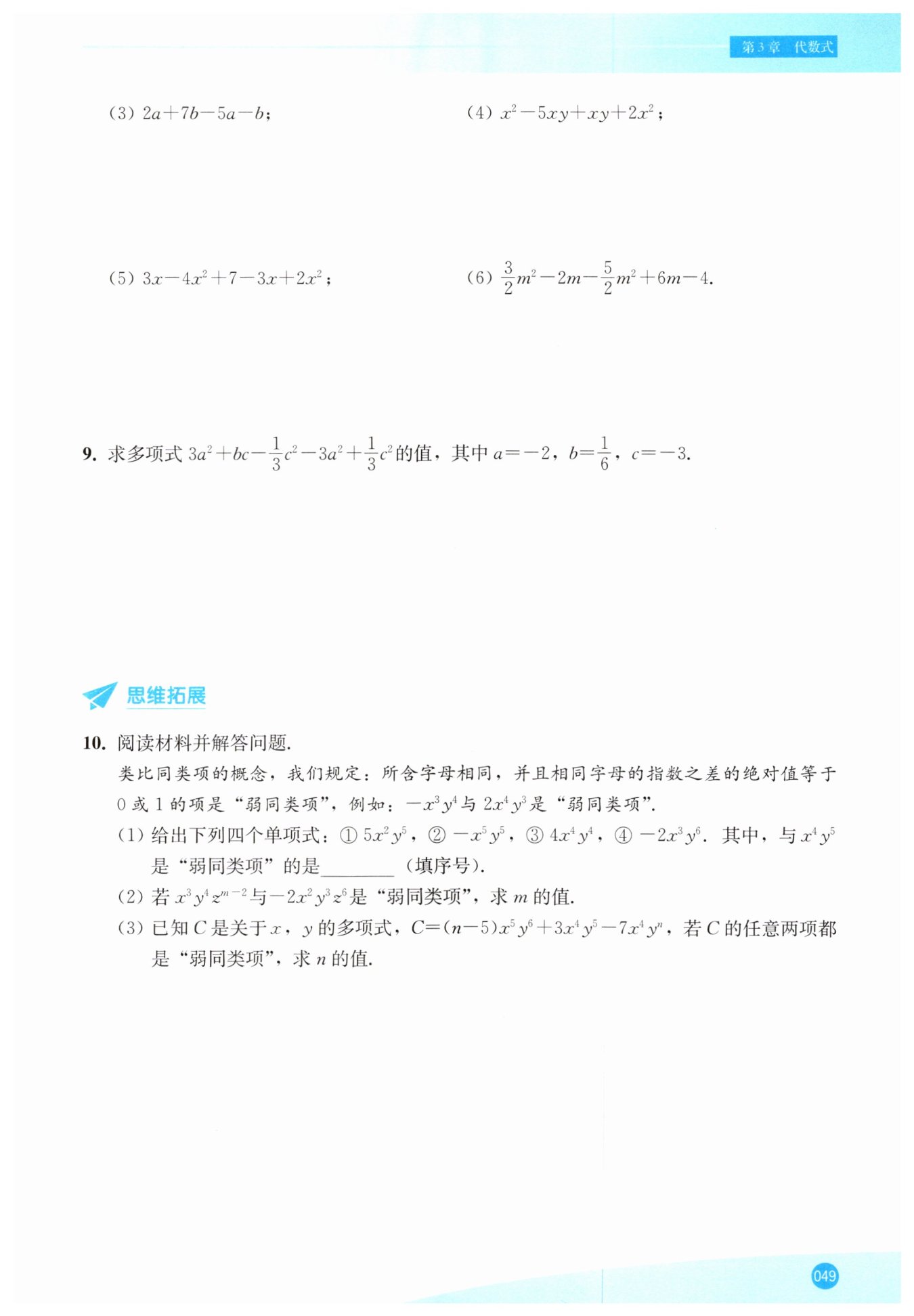 合并同類項可得: