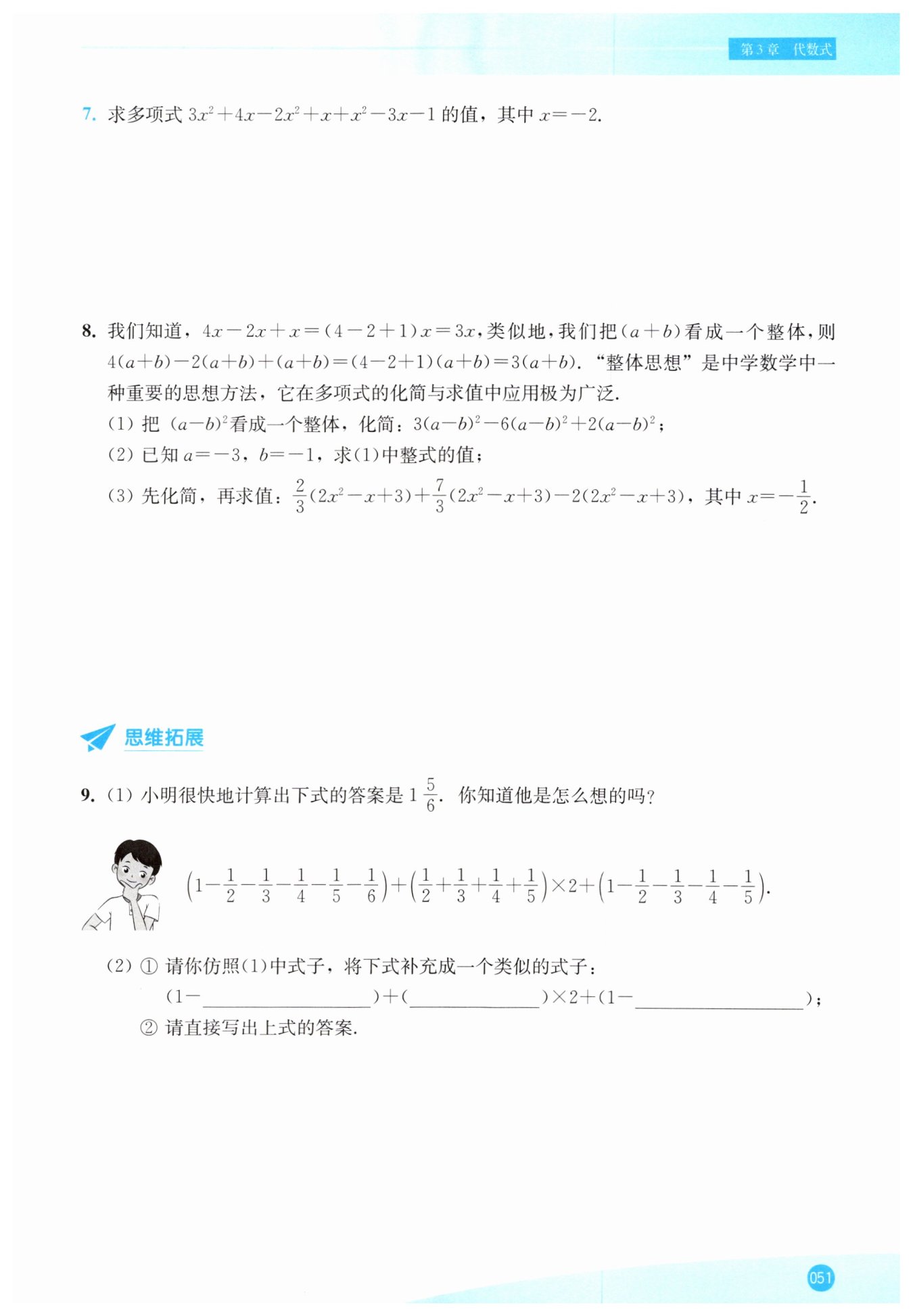 $(2) 例如,把\frac{1}{2} + \frac{1}{3} + \frac{1}{4}看成一個(gè)整體,記為a,$