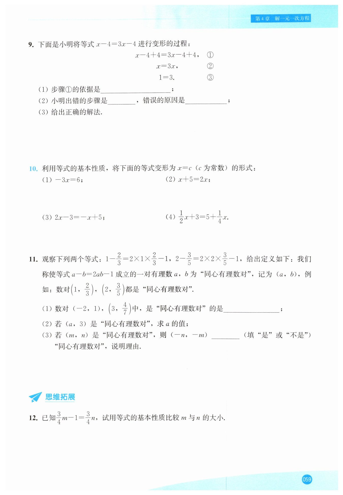 $ \begin{aligned}解:(3)x-4&=3x-4 \\ x-4+4&=3x-4+4 \\ x&=3x \\ x-3x&=0 \\ -2x&=0 \\ x&=0 \\ \end{aligned}$