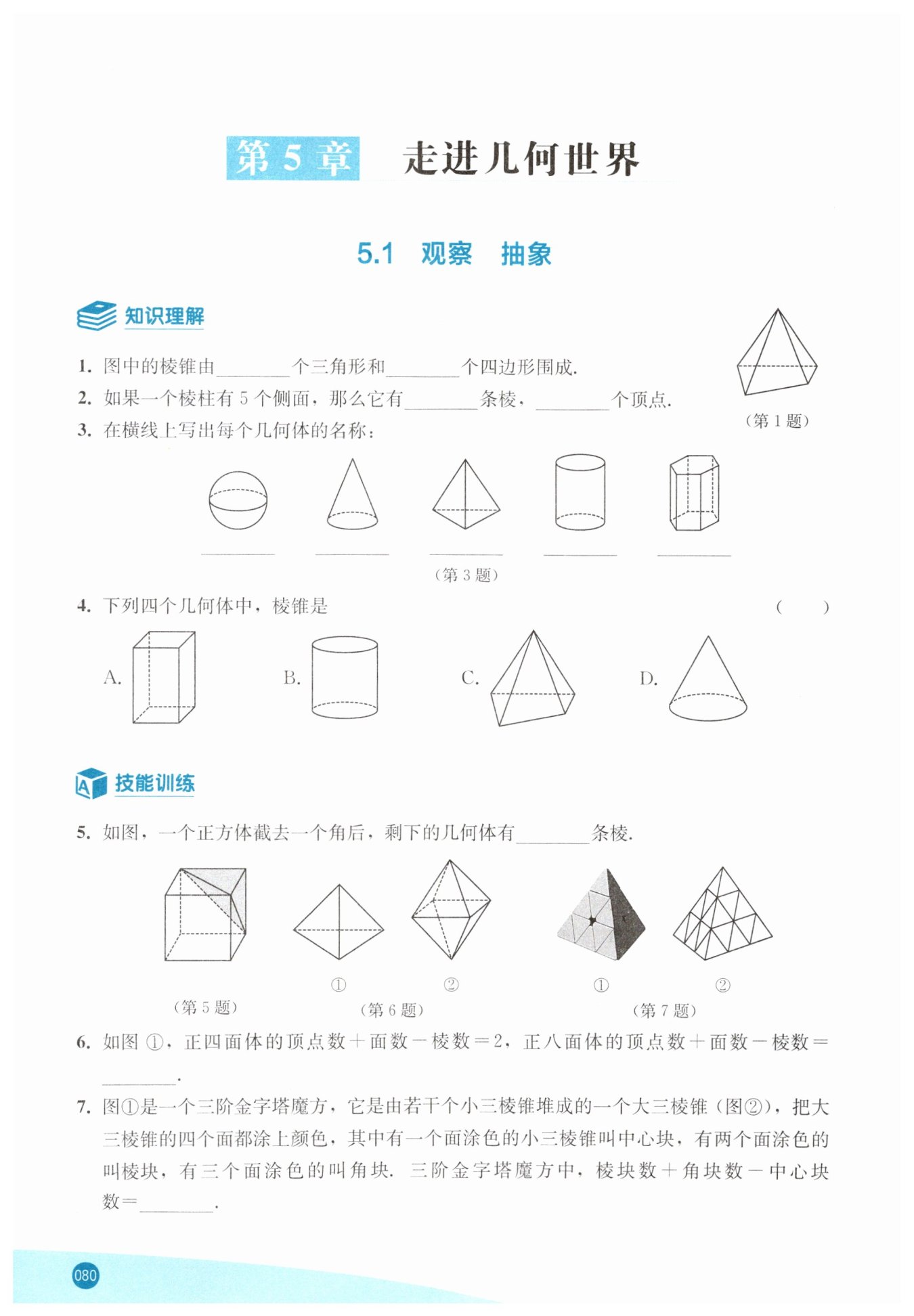 側(cè)面有5條棱,所以總棱數(shù):$10 + 5 = 15$(條)