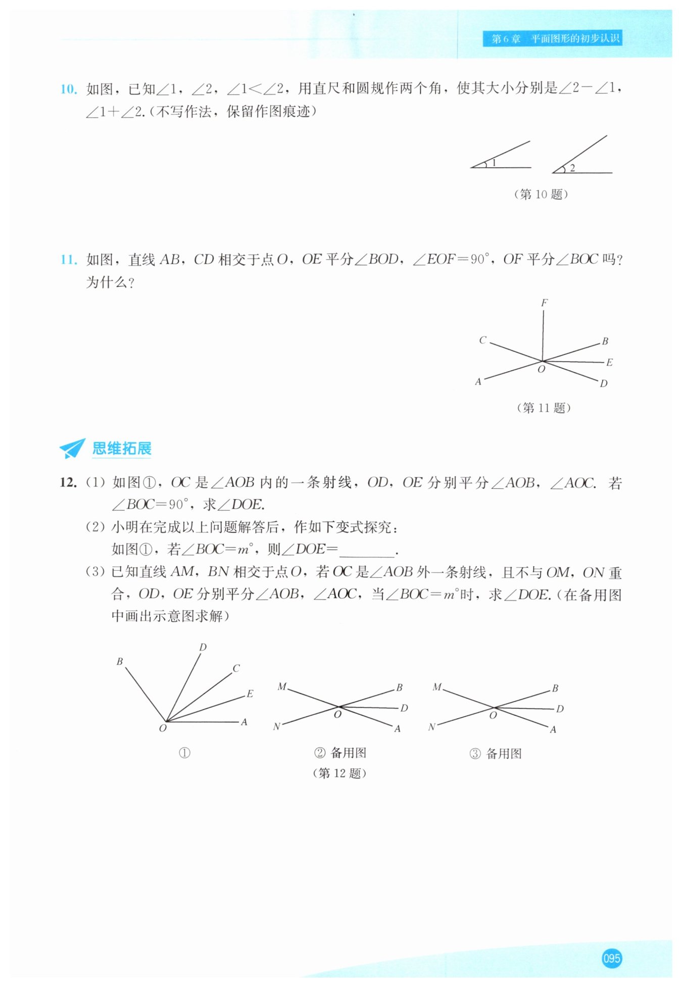 $∠BOC=∠AOC=m°,∠DOE=∠AOE?∠AOD=\frac{1}{2}∠AOC+\frac{1}{2}∠AOB=\frac{1}{2}∠BOC=180°?\frac{m°}{2};$