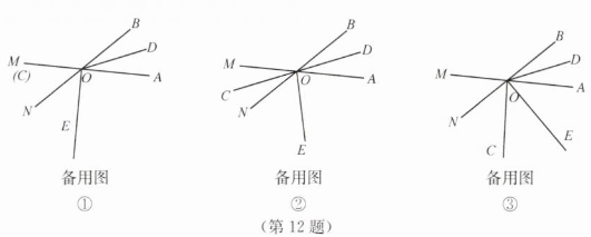 $綜上所述,∠DOE=\frac{m°}{2}或180°?\frac{m°}{2}$