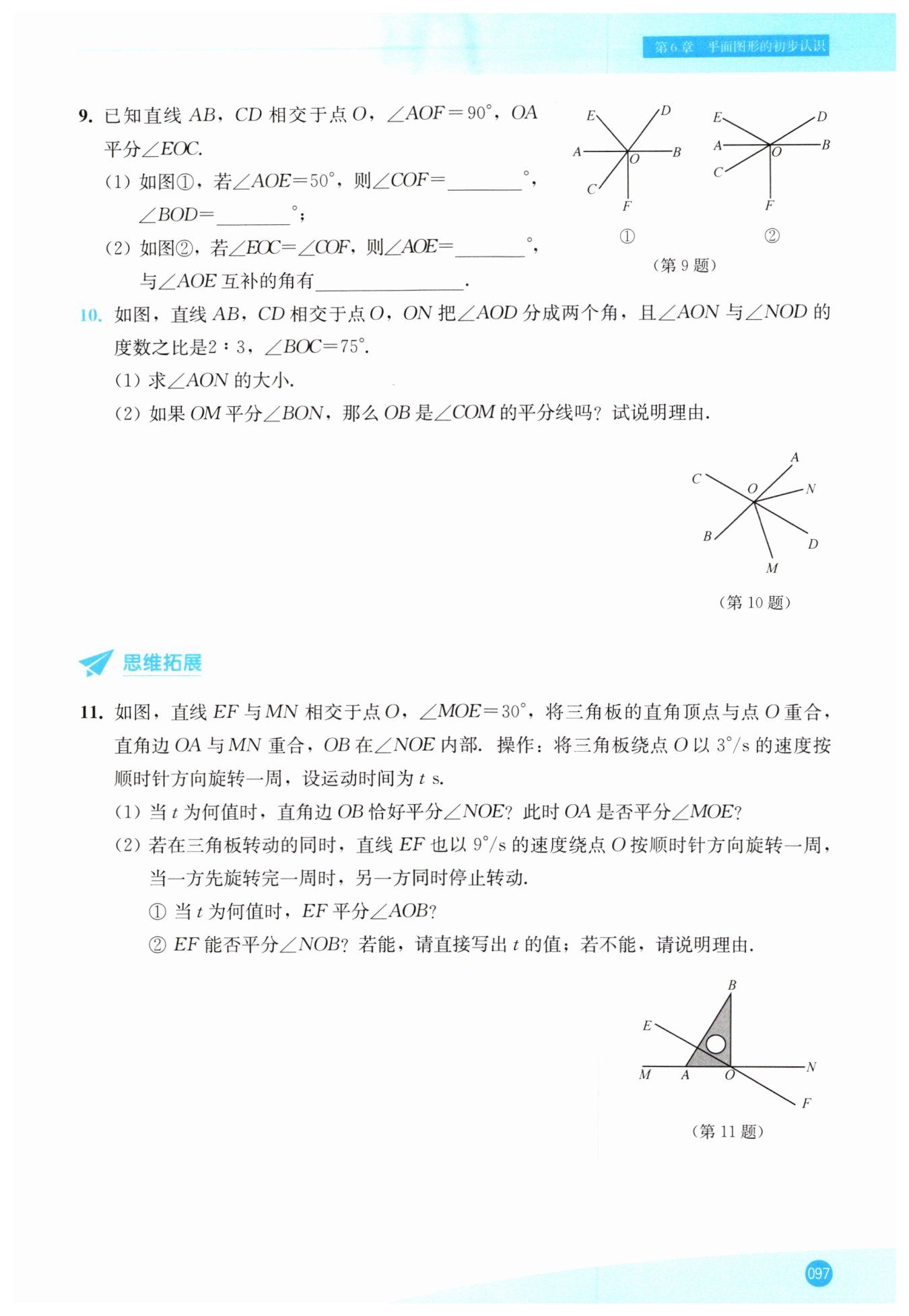 $OF 平分∠AOB,依題意有 30+9t-3t=180+90÷2,解得 t=32.5. $