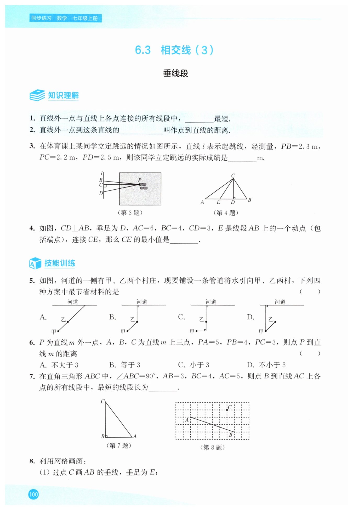 在直角三角形中,點(diǎn)到直線的最短距離為垂線段的長度。
