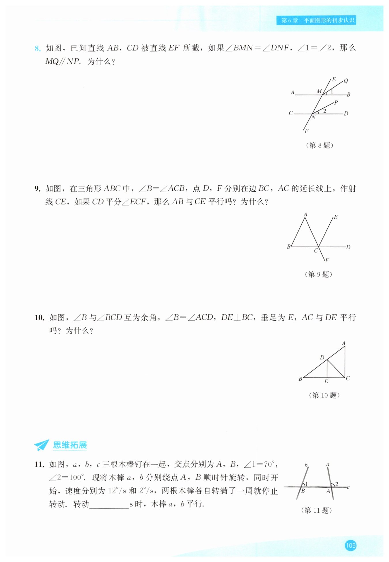 當(dāng)木棒$ a $,$ b $平行時(shí),同位角相等或同旁內(nèi)角互補(bǔ),即: