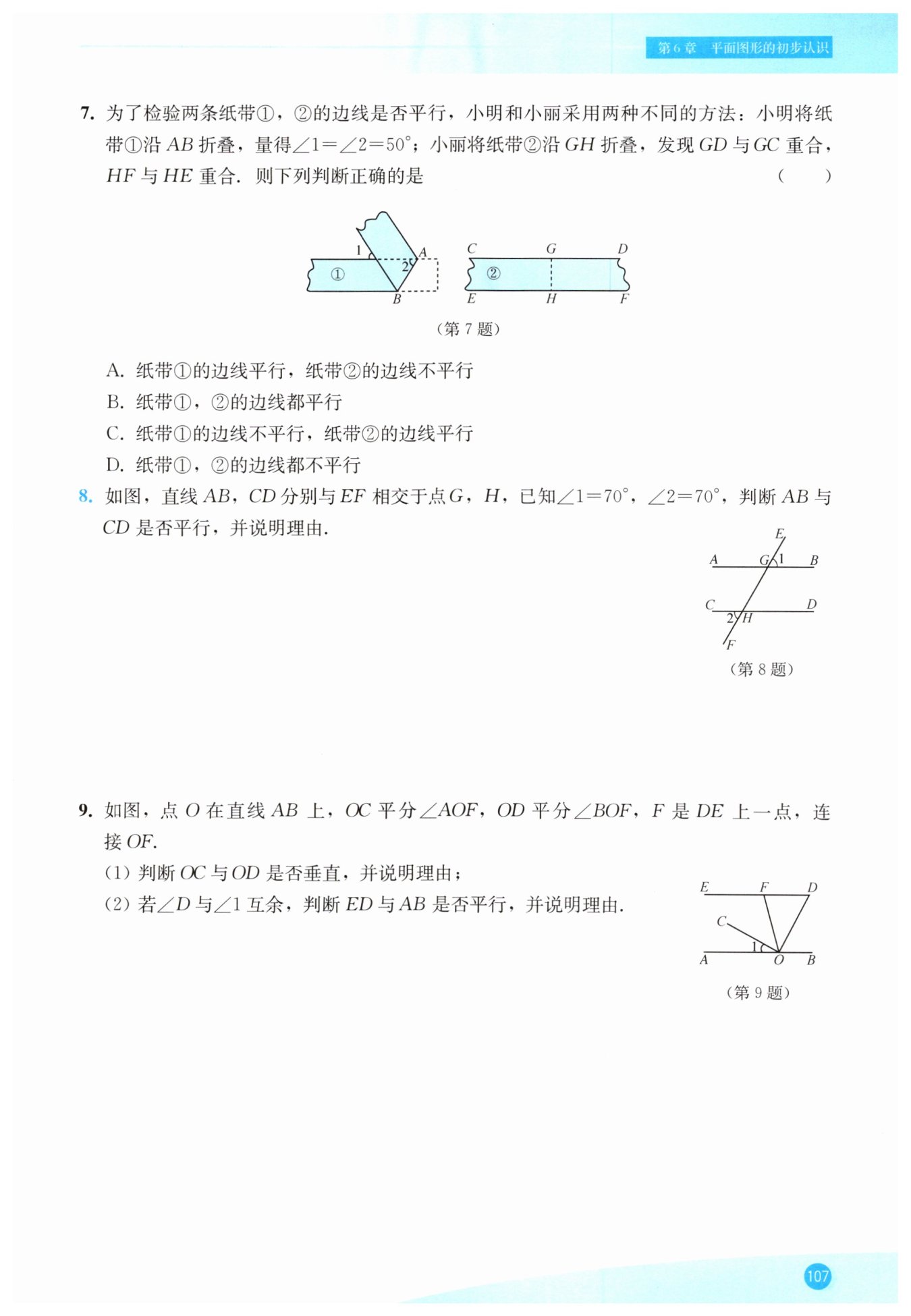 因∠3≠∠4,紙帶①上下邊線被AB所截形成的內(nèi)錯(cuò)角不相等,故邊線不平行。
