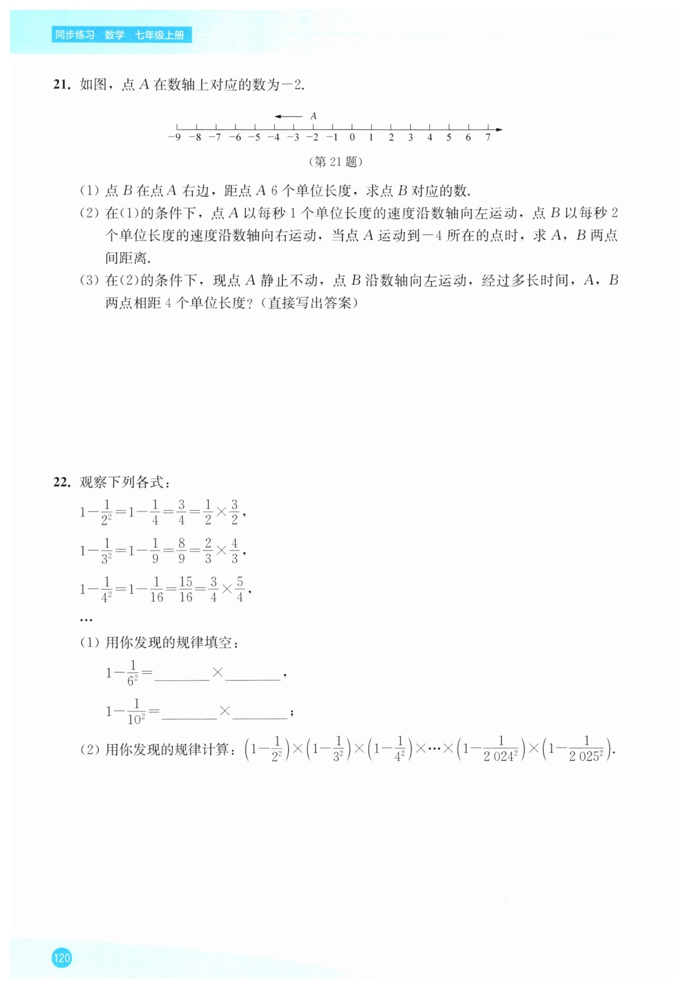 (2)點(diǎn)A從-2運(yùn)動到-4所用時間為$[(-2)-(-4)]÷1=2$秒,此時點(diǎn)A對應(yīng)的數(shù)為-4,點(diǎn)B對應(yīng)的數(shù)為$4+2×2=8$,A,B兩點(diǎn)間距離為$8-(-4)=12$個單位長度。