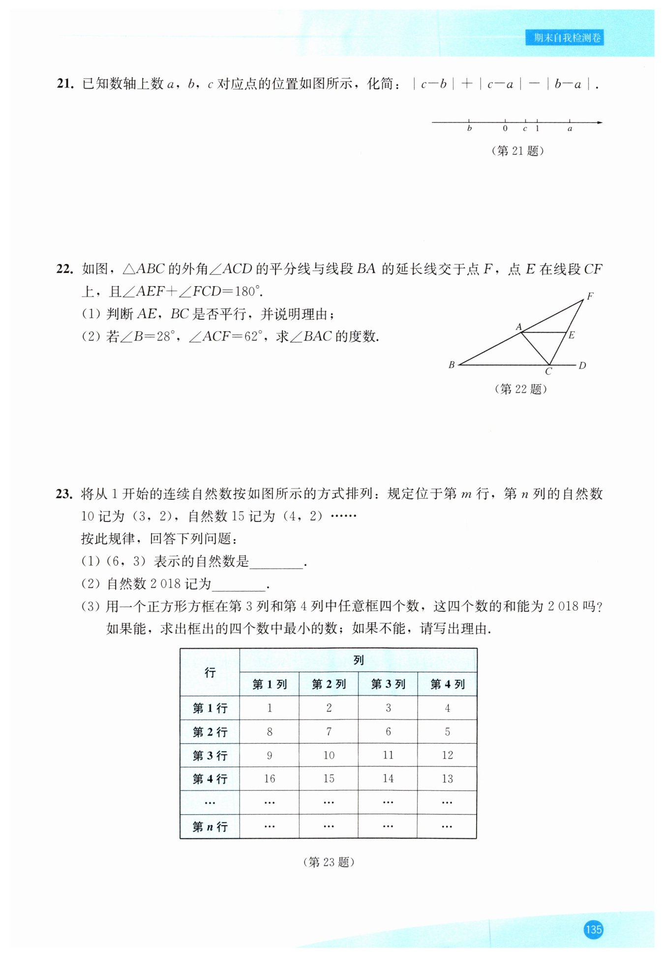 (3) 若正方形框內(nèi)第一行為奇數(shù)行,設(shè)框出的四個(gè)數(shù)中最小的數(shù)為x,則另外三個(gè)數(shù)分別為$x + 1,x + 2,x + 3$,根據(jù)題意,得$x + x + 1 + x + 2 + x + 3 = 2018$,解得$x = 503$,因?yàn)?503 = 4×125 + 3$,所以503為第126行的自然數(shù),不符合題意,舍去;若正方形框內(nèi)第一行為偶數(shù)行,設(shè)框出的四個(gè)數(shù)中最小的數(shù)為y,則另外三個(gè)數(shù)分別為$y + 1,y + 6,y + 7$,根據(jù)題意,得$y + y + 1 + y + 6 + y + 7 = 2018$,解得$y = 501$,因?yàn)?501 = 4×125 + 1$,所以501為第126行第4列的自然數(shù),符合題意,所以這四個(gè)數(shù)的和能為2018,框出的四個(gè)數(shù)中最小的數(shù)為501