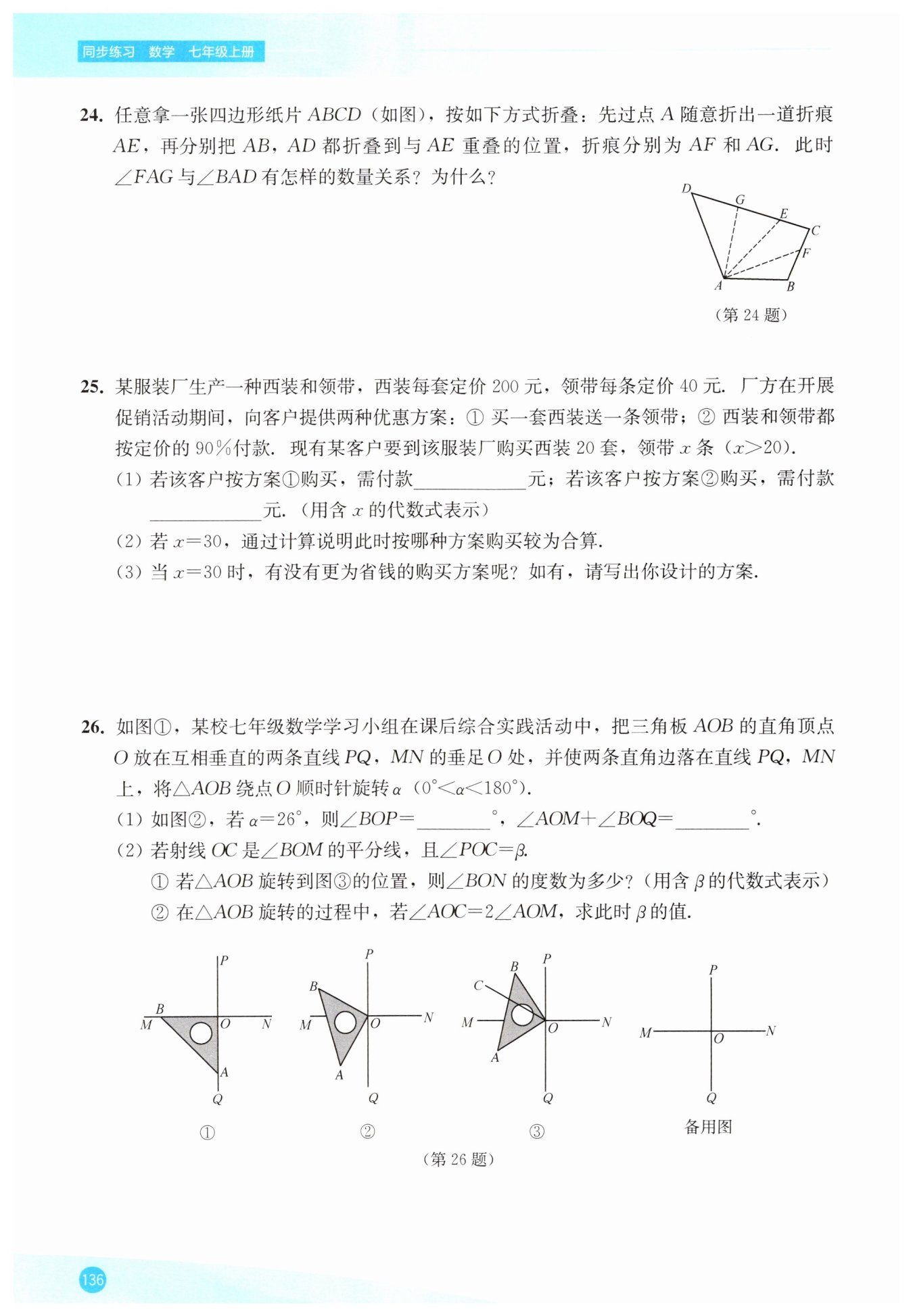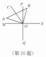 $因?yàn)椤螧OM=∠AOQ=26^{\circ},所以∠BOP=90^{\circ}-26^{\circ}=64^{\circ};$