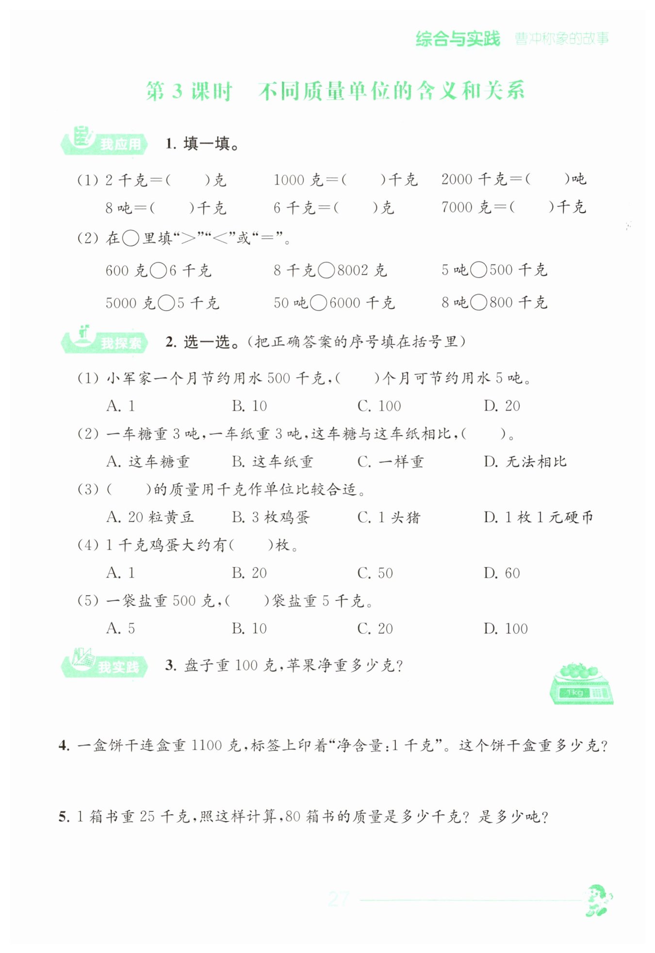 答:蘋果凈重900克。