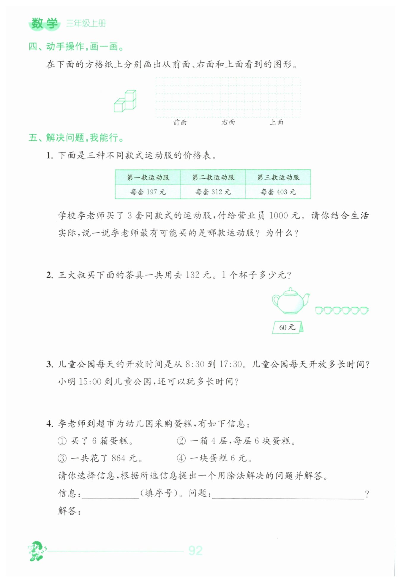 答:李老師最有可能買的是第二款運(yùn)動(dòng)服。1209元超過1000元,591元和936元都小于1000元,而936元更接近1000元,符合生活實(shí)際中購(gòu)買商品的價(jià)格合理性。