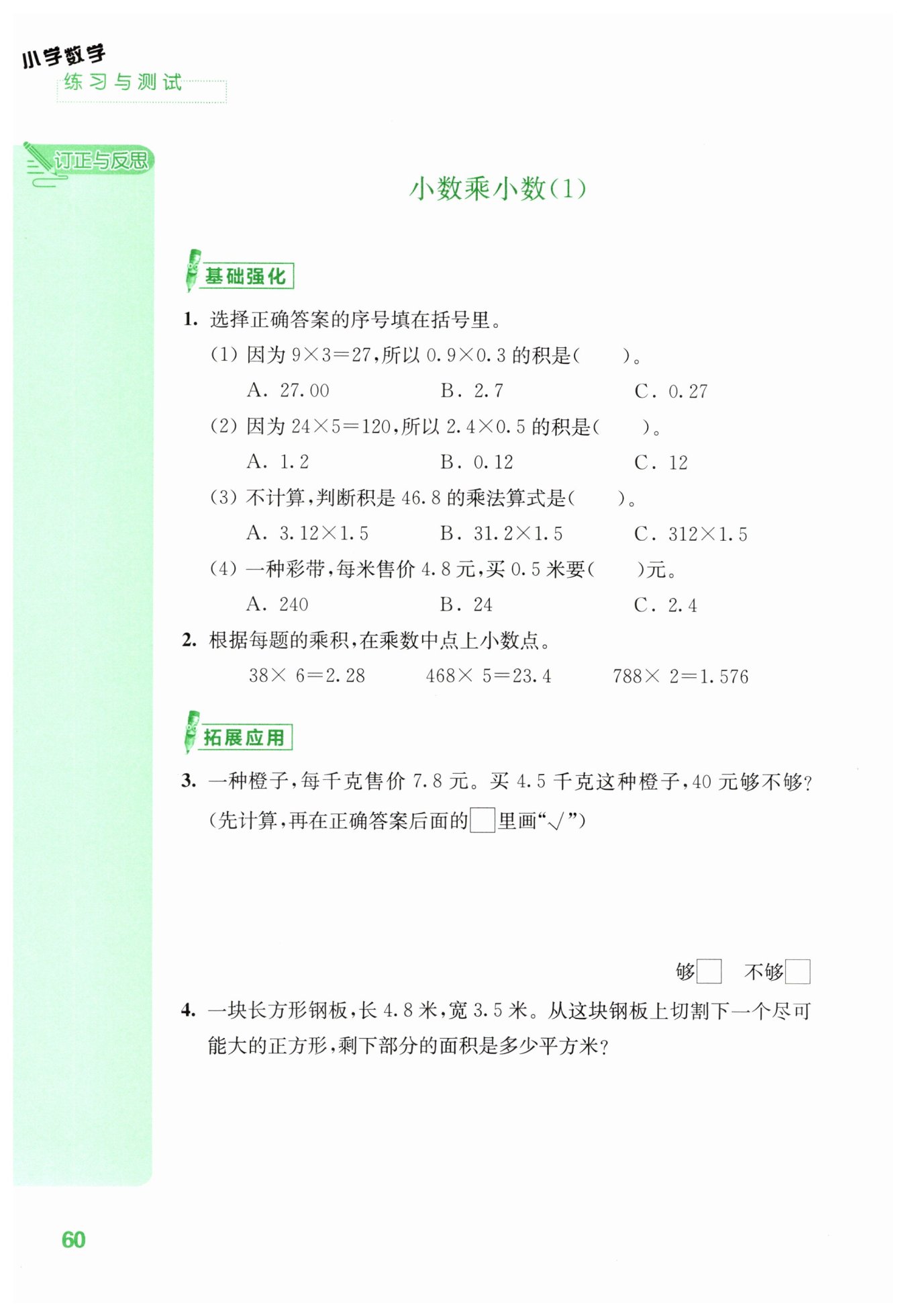 長(zhǎng)方形面積:4.8×3.5=16.8(平方米) 最大正方形面積:3.5×3.5=12.25(平方米) 剩下部分面積:16.8-12.25=4.55(平方米) 答:剩下部分的面積是4.55平方米。