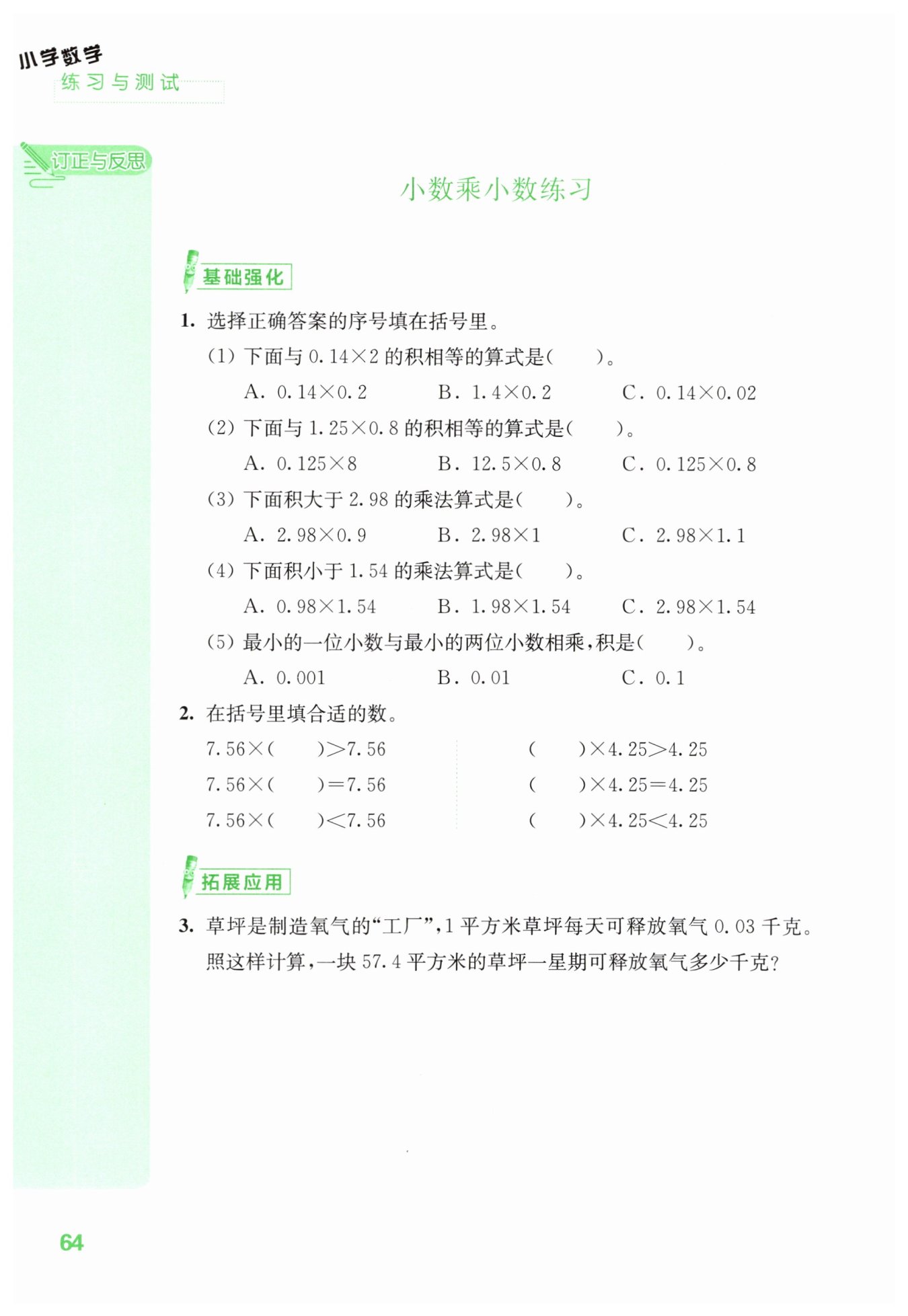 0.03×57.4=1.722(千克) 1.722×7=12.054(千克) 答:一塊57.4平方米的草坪一星期可釋放氧氣12.054千克。