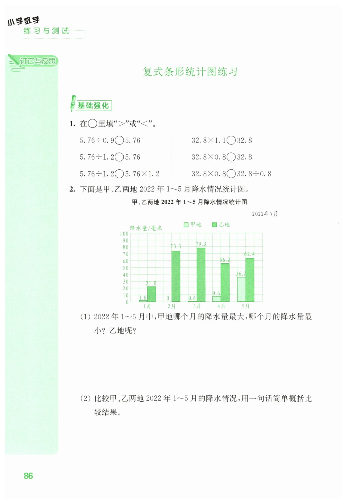 答:2022年1~ 5月甲地降水量比乙地降水量小很多。