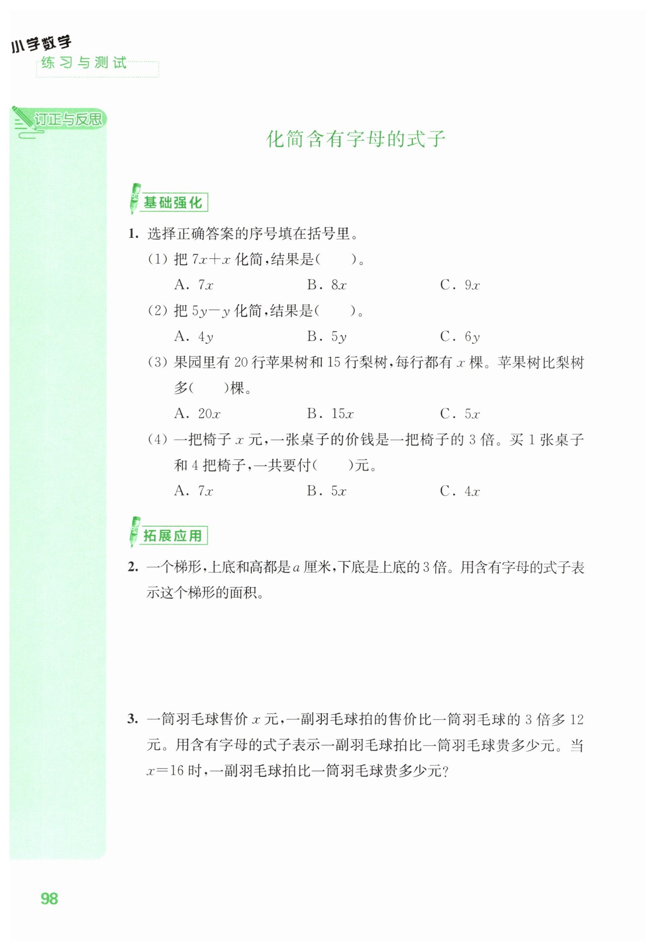 ?3x+12-x=2x+12? 當(dāng)?x=16?時(shí),?2 ×16+12=44(?元?)? 答 :一副羽毛球拍比一筒羽毛球貴?(2x+12)?元, 當(dāng)?x=16?時(shí),一副羽毛球拍比一筒羽毛球貴?44?元。
