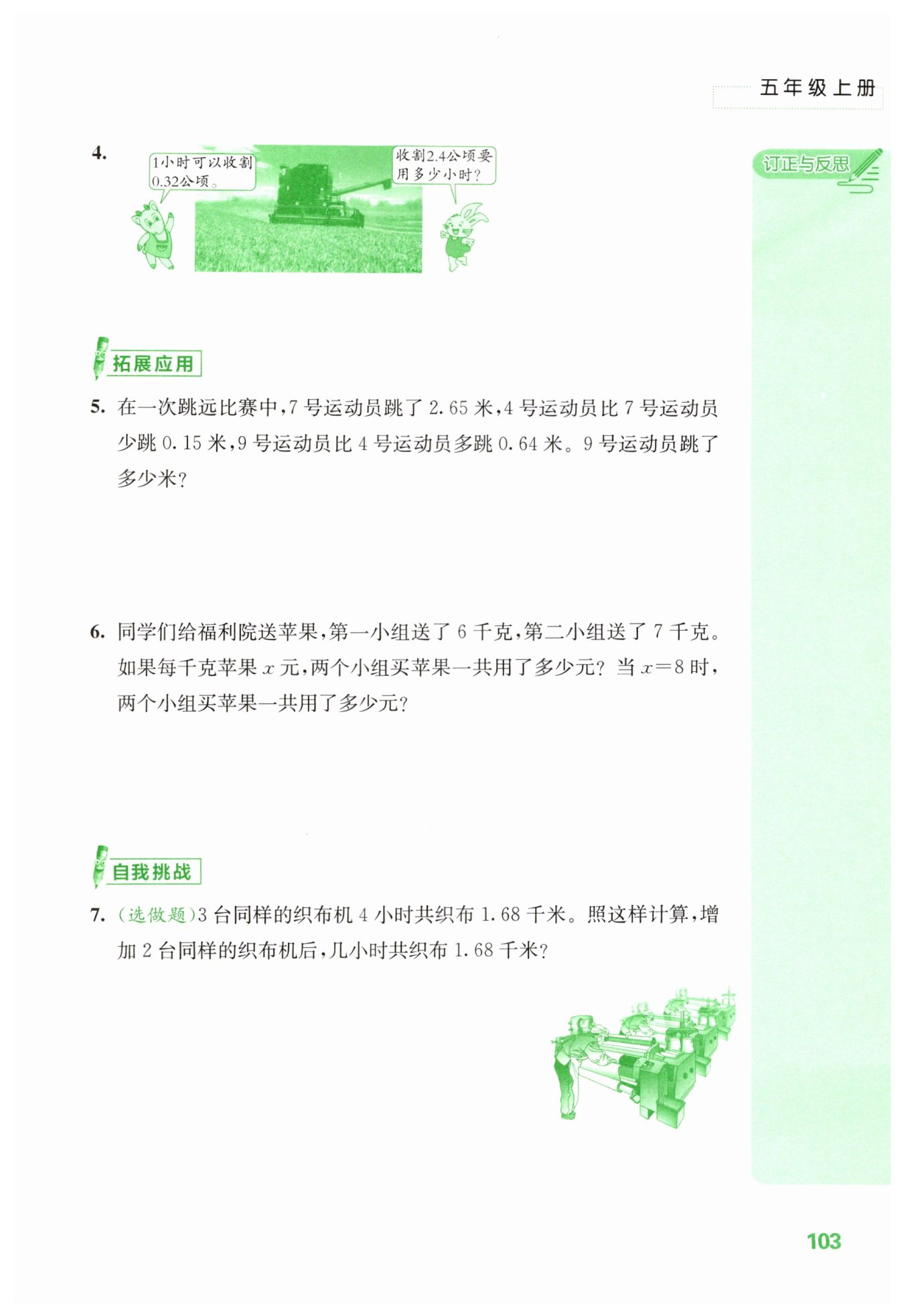 1.68÷3÷ 4=0.14 (千米 ) 1.68÷0.14÷(3+2)=2.4 (小時 ) 答:2.4小時共織布1.68千米。