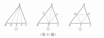 ∴BD = $\frac{1}{2}$BC,$S_{\triangle ABD} = \frac{1}{2}S_{\triangle ABC}$。