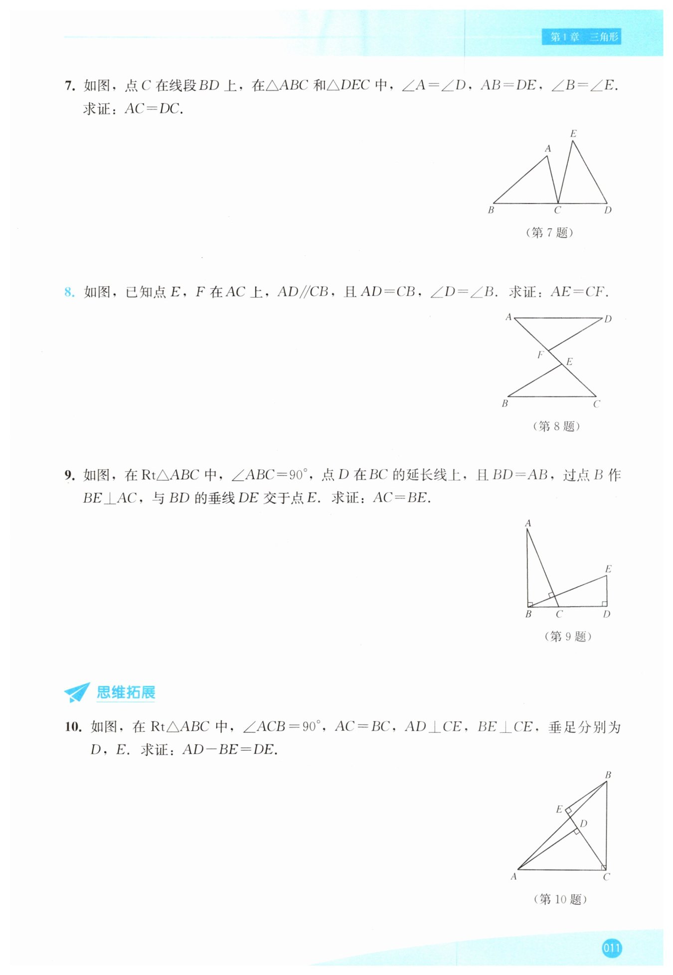 ∴ $AD - BE = DE$(等量代換)。