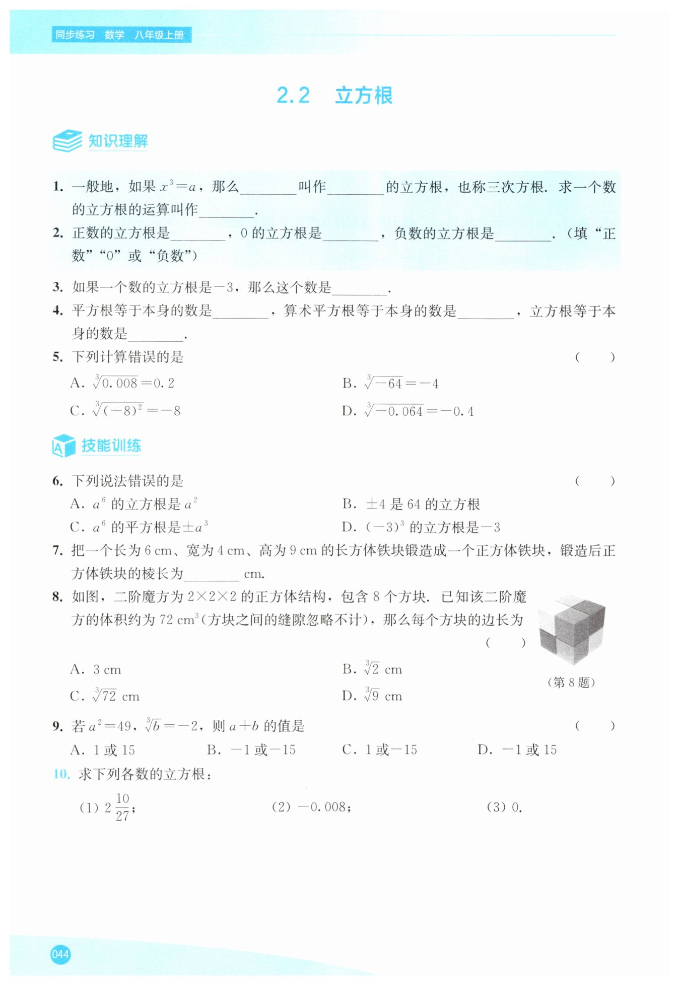 二階魔方包含8個(gè)方塊,總體積約為$72\ cm^3$,可得:
