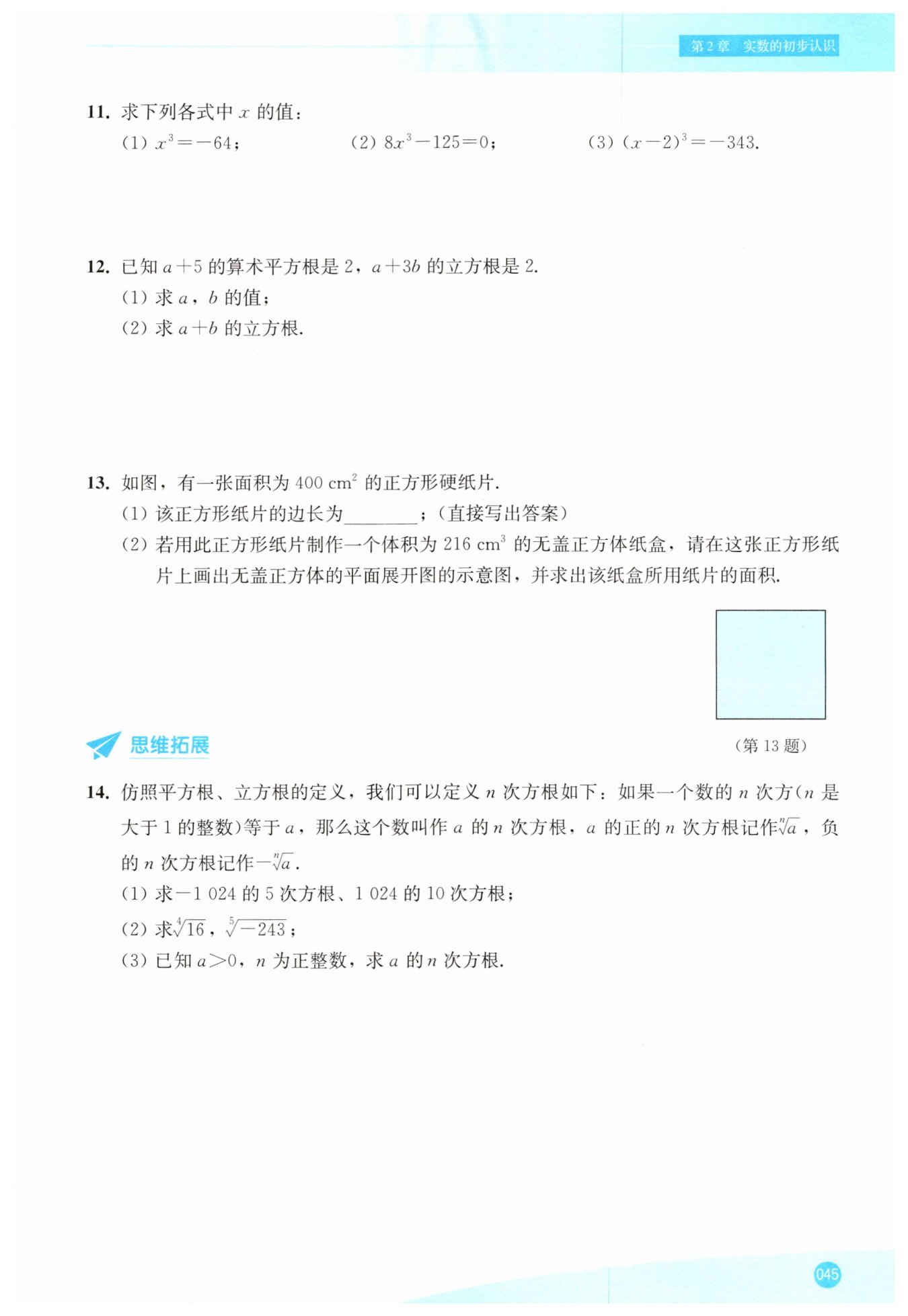 $解:(2)因?yàn)闊o蓋正方體的體積是216\ \text{cm}^3,$