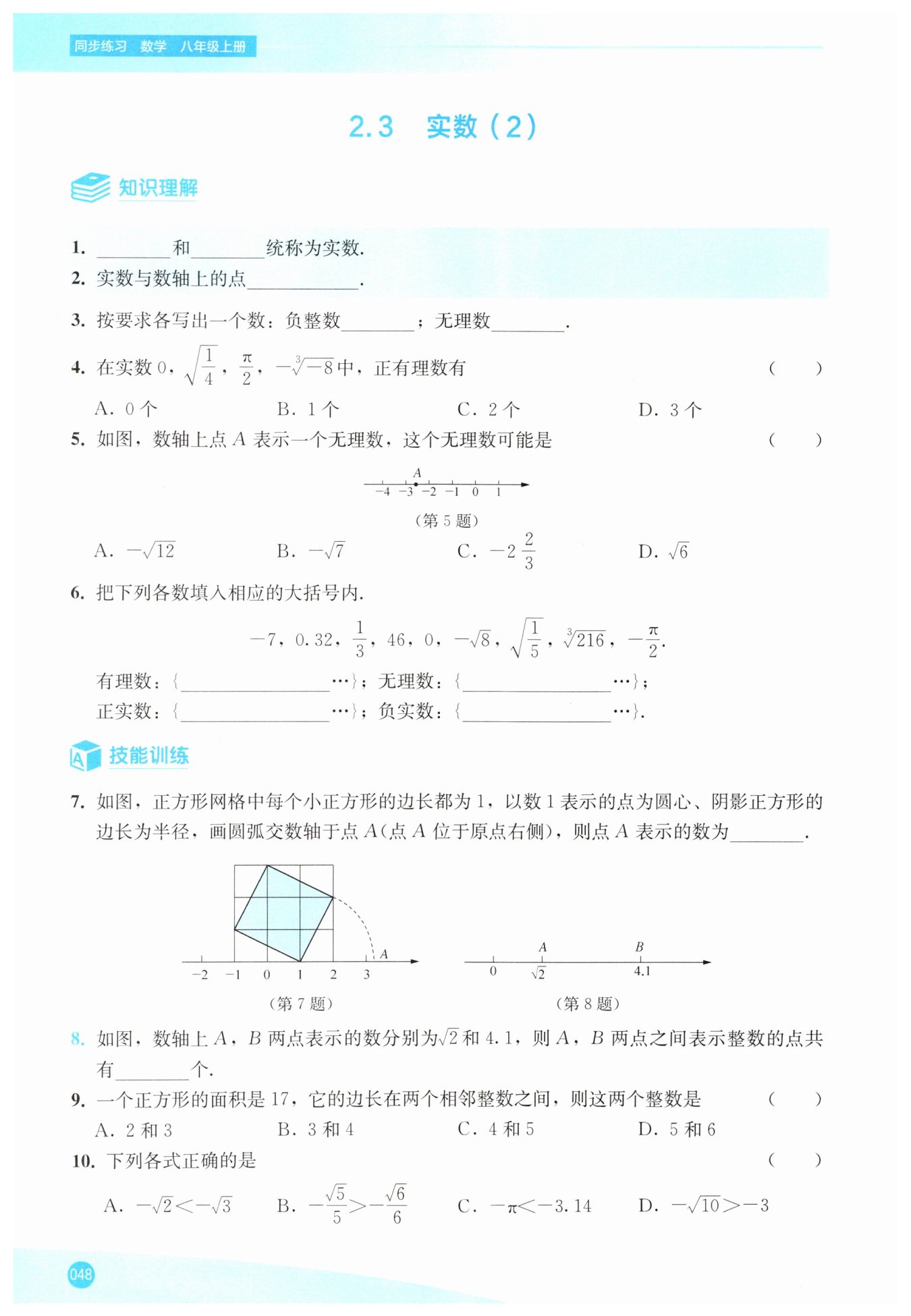 A. $\because \sqrt{2}<\sqrt{3}$,$\therefore -\sqrt{2}>-\sqrt{3}$,故A錯誤;