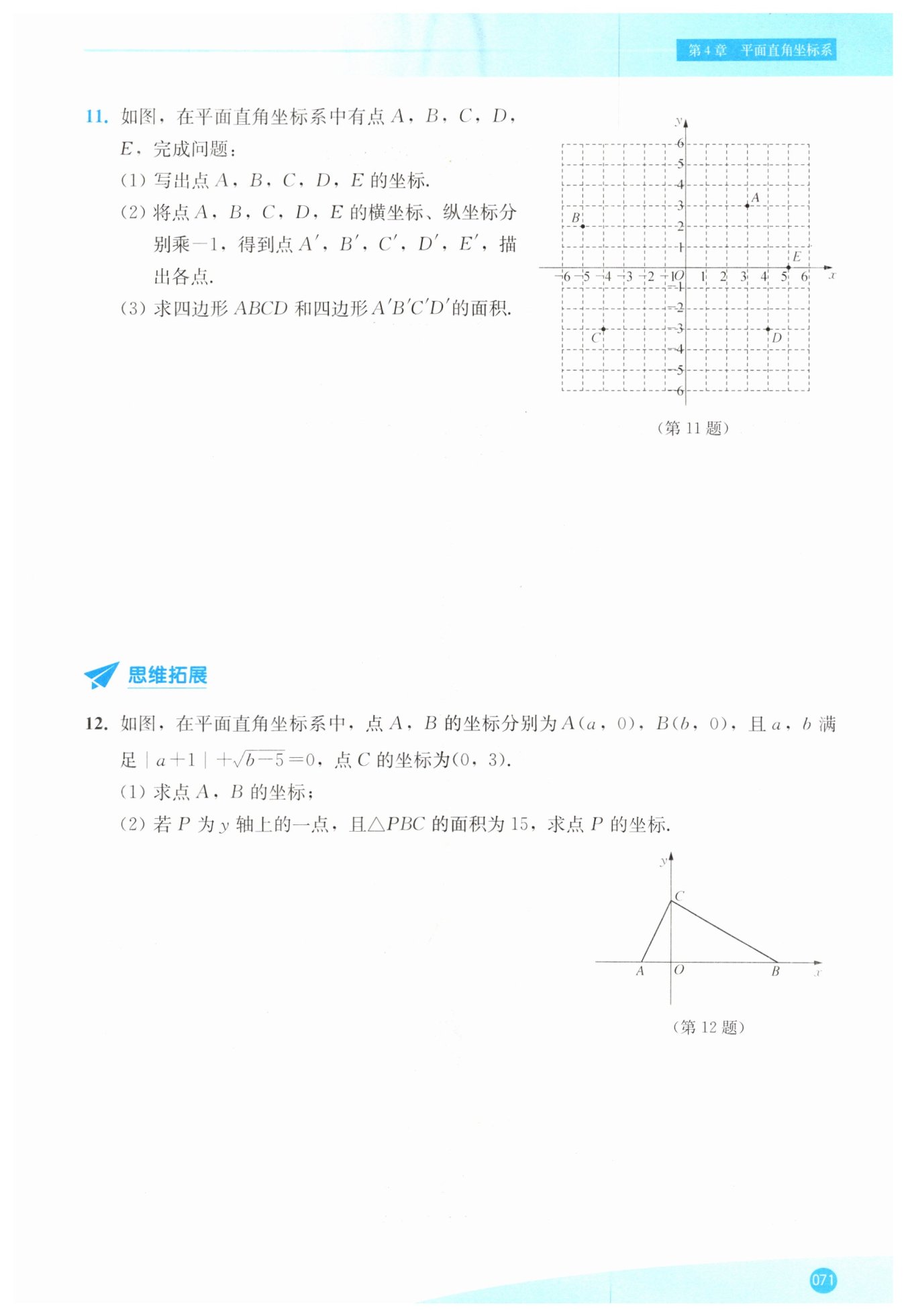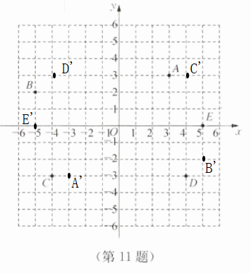 $解:(1) A(3,3),B(-5,2),C(-4,-3),D(4,-3),E(5,0)$ $(2) 已知點(diǎn)A(3,3),B( - 5,2),C( - 4,-3),D(4,-3)$ $E(5,0)。$ $橫坐標(biāo)、縱坐標(biāo)分別乘-1后: